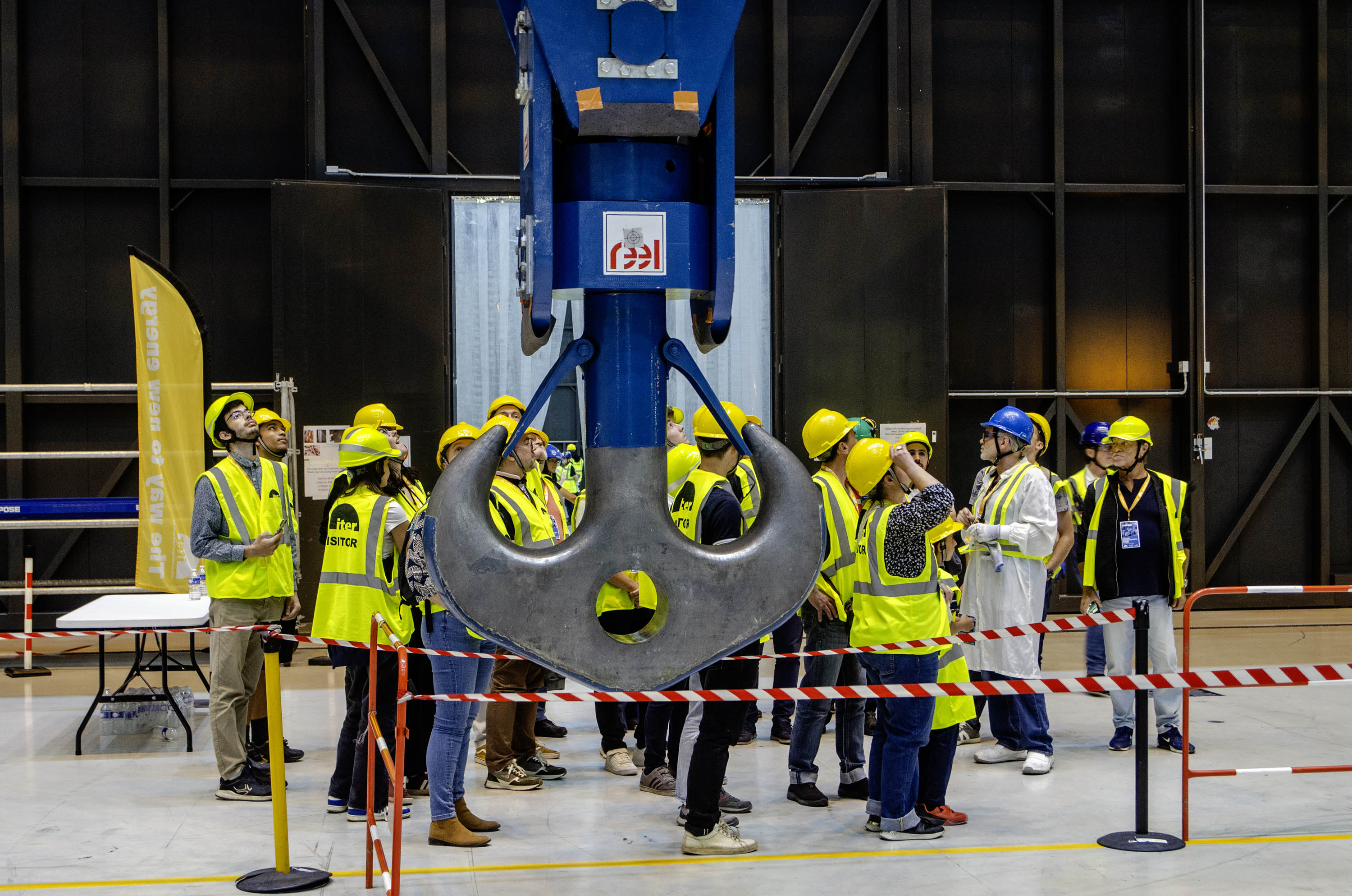 A l'intérieur du « puits » d'assemblage, des cibles installées sur la totalité des surfaces fourniront le système de coordonnées global pour le positionnement vertical de la machine. Au fur et à mesure que l'assemblage de la machine avancera—et que certaines cibles ne seront plus visuellement accessibles—les métrologues s'appuieront sur des cibles installées dans les grandes ouvertures autour de la fosse (les « galeries ») pour maintenir les lignes de visée des instruments de mesure.