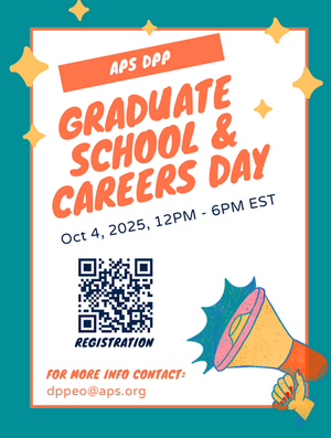 On behalf of the Education & Outreach Committee of the APS DPP (American Physical Society Division of Plasma Physics), we would like to invite you to participate in the APS DPP Graduate School and Careers Day. The event will be fully virtual and will be held on Saturday 4 October, 12PM-6PM EST.
