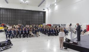 A few of these emblematic contributors, whether engineers or scientists, logistics specialists or industry representatives, were then called on stage. First among them, Michel Huguet was introduced by Director-General Barabaschi as "the father of these coils." The physicist, who had joined the French fusion program in 1969 and had headed for more than ten years (1992-2003) the ITER Joint Work Site in Naka, Japan, reminded the audience that the achievement that was being celebrated originated 32 years ago, with the launch of the Engineering Design Activities (EDA), the founding moment in the long history of the project.