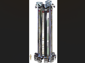 The different support elements provide a secure base and cage that enables the assembly to withstand thousands of tonnes of force—both pre-load, when forces are applied to the structure to keep vertical gaps and stresses from developing between the modules, and during operation in the face of the machine's internal magnetic forces.
