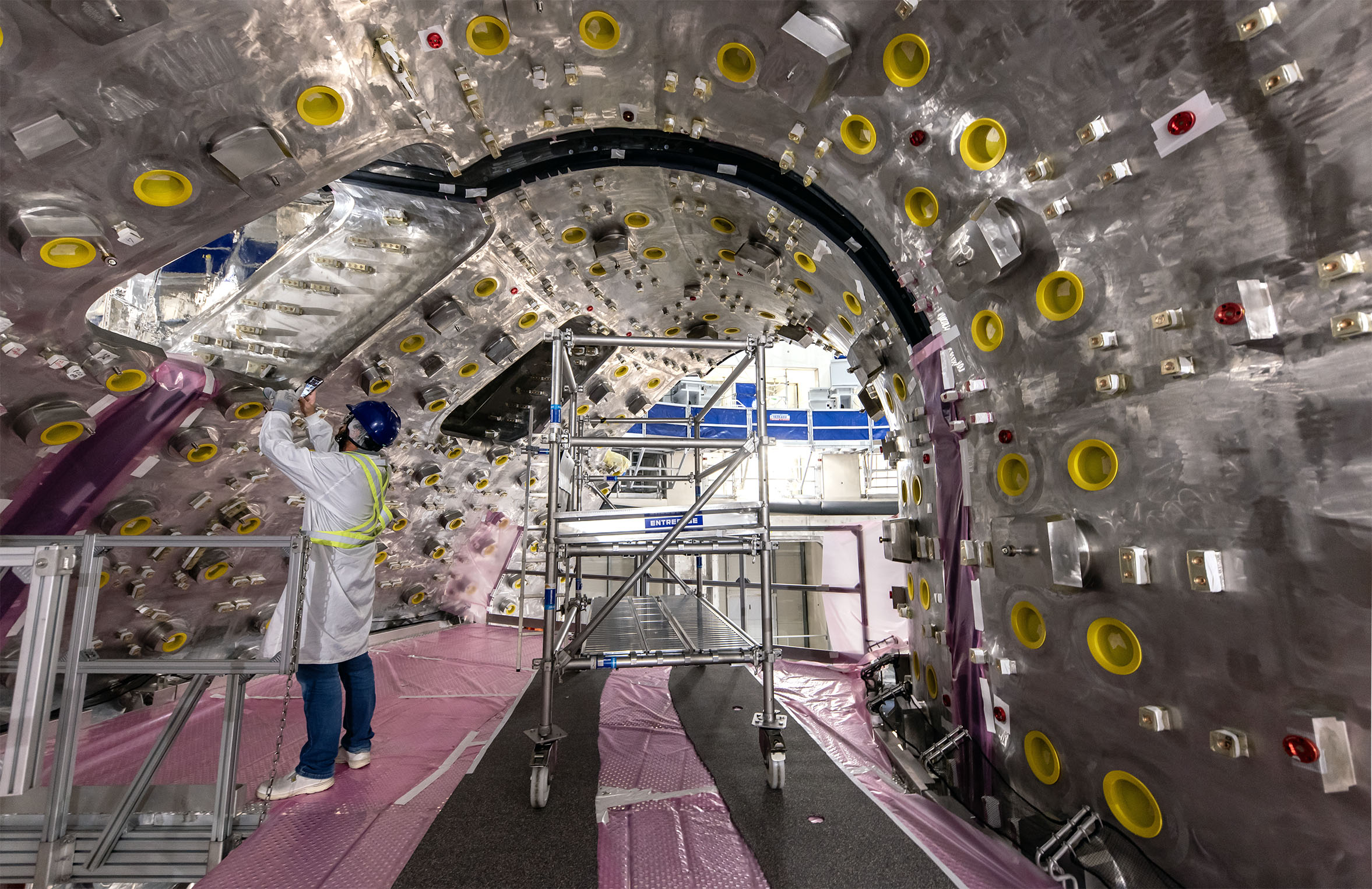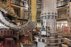Core machine assembly is proceeding from bottom to top. Beginning with the heaviest single component—the 1,250-tonne cryostat base, installed in May 2020—assembly contractors are executing the sequence as planned: lower poloidal field coils, cryostat lower cylinder and thermal shield and, over the next years, the nine vacuum vessel modules, subsequent ring coils, components at the top of the machine, central solenoid and, finally, the cryostat lid.