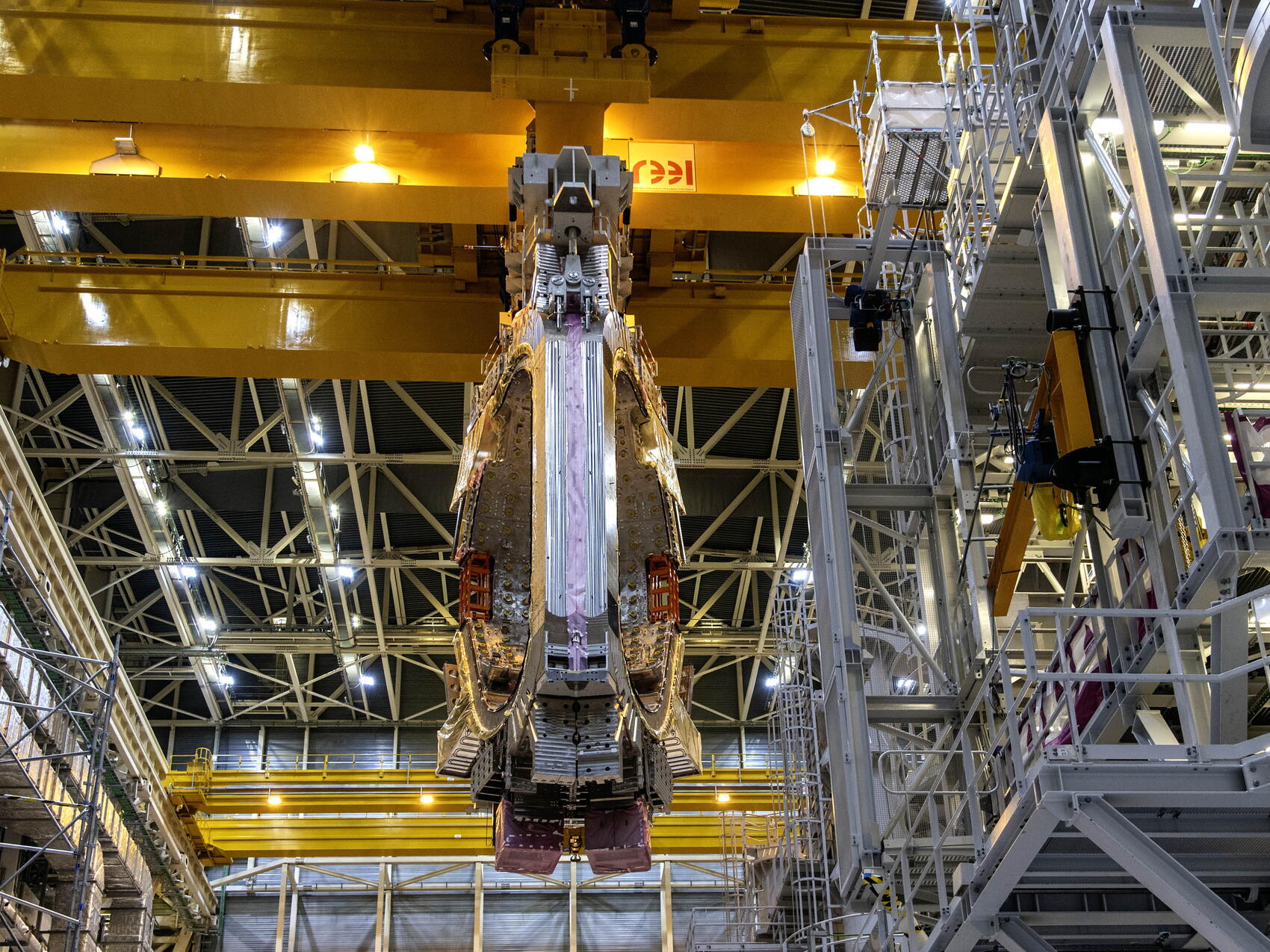 La création d'un module de secteur à partir de ces trois éléments majeurs—sans mentionner tous les autres éléments d'assemblage et les accessoires—est une opération de longue haleine. En 2021 et 2022, l'assemblage du module n°6 avait nécessité 18 mois de travail. (Installé dans le puits d’assemblage au mois de mai 2022, le module en avait été extrait 14 mois plus tard pour être réparé). Les nombreux enseignements tirés de cette opération initiale ont permis aux équipes de diviser par trois le temps d'assemblage du module n°7, le réduisant à six mois et dix jours seulement. Cet accomplissement a été célébré le vendredi 28 mars, les équipes s'engageant à faire « encore mieux pour les modules suivants ».