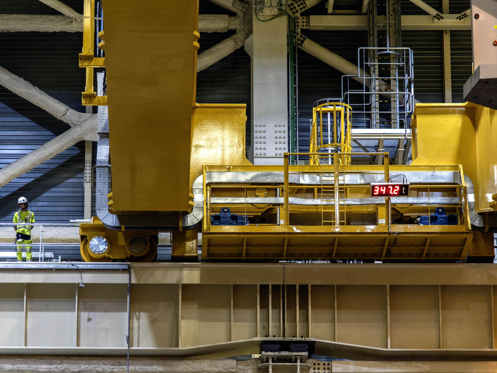 Jeudi matin, avec trois semaines d'avance, le transfert a pu commencer. Pour ceux qui avaient assisté à l'opération au mois de mai 2022, tout semblait s'être déroulé exceptionnellement vite et bien. Et ce n'était pas qu'une impression : bien que la charge se soit parfois déplacée à la « micro-vitesse » de quelques centimètres par seconde, elle a semblé atteindre le bord de la fosse du tokamak en un temps record. « Les ponts roulants se sont révélés beaucoup plus fiables, et n’ont pas occasionné le moindre retard, alors que nous avions subi deux heures d'immobilisation en raison de problèmes techniques en 2022 », explique Daniel Coelho.