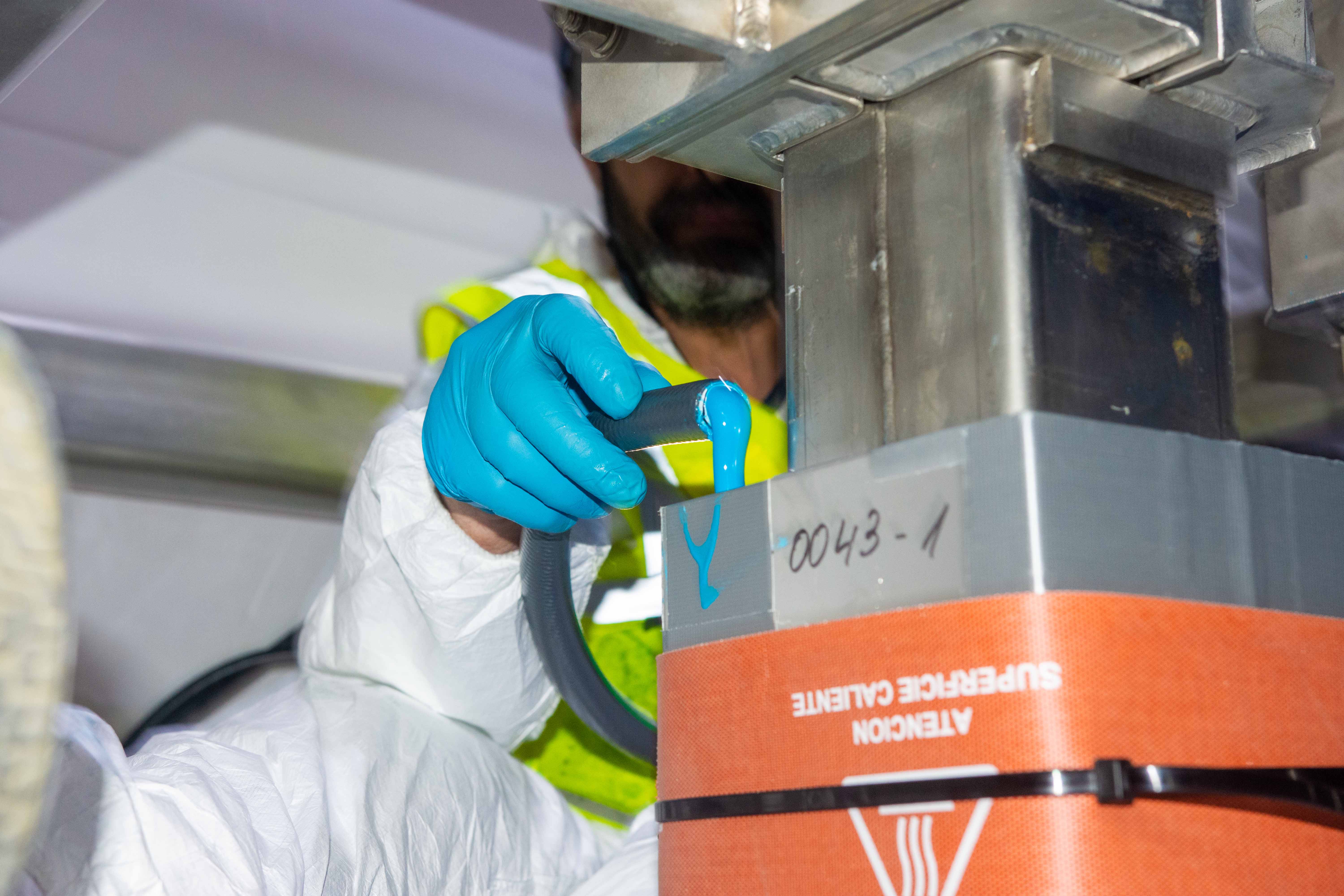 2025-12-11 - Cet élastomère, de couleur bleue Schtroumpf, a été spécialement développé pour combler les ouvertures autour des barres omnibus dans le Bâtiment tokamak. Il répond aux mêmes normes de sécurité et de sûreté nucléaire que le matériau des murs environnants.