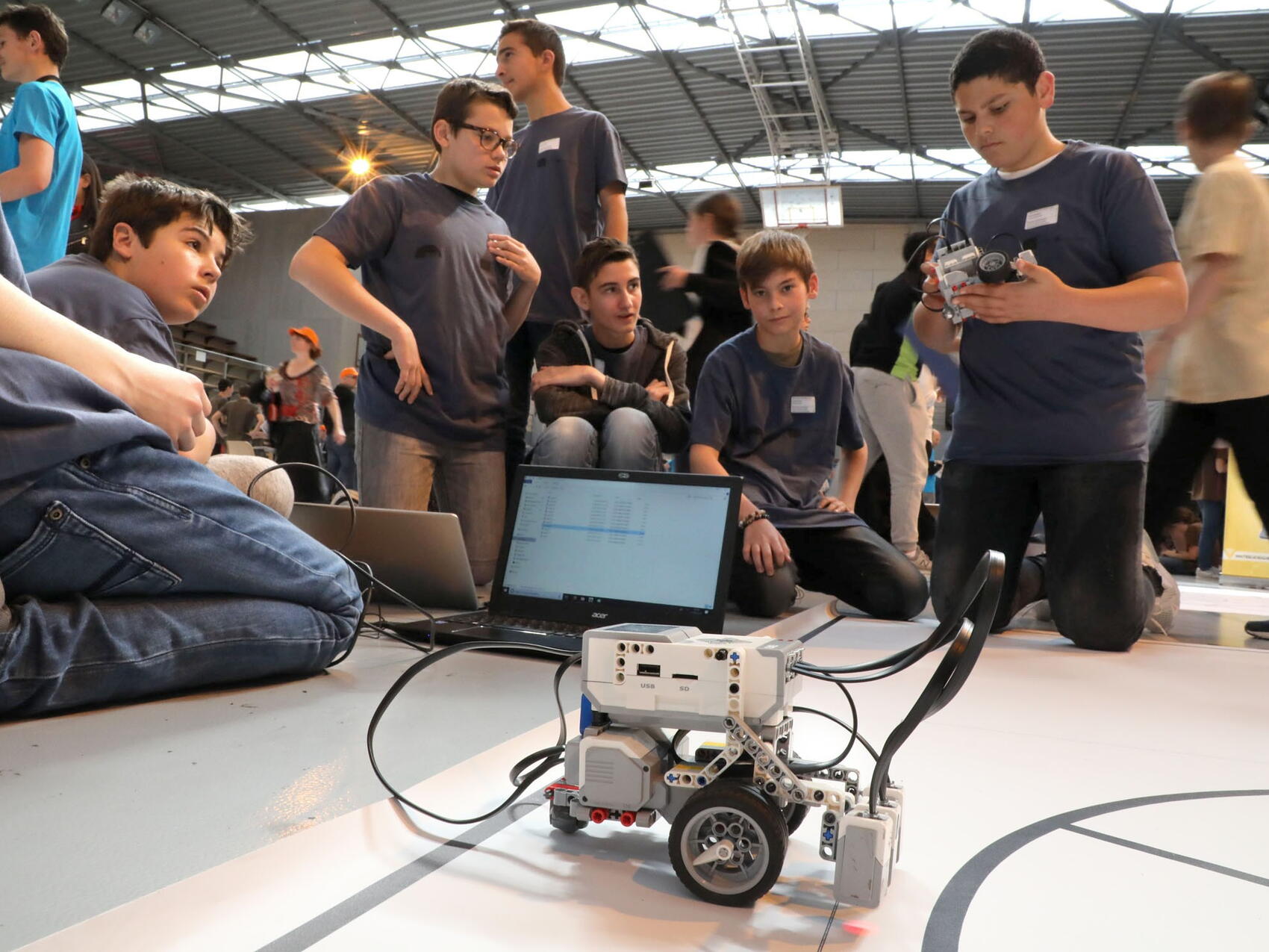 Upon entering the gymnasium at the Lycée des Iscles, you can feel the energy. Seven hundred students, pulsating music, sounds of triumph (and disappointment). There is no doubt—ITER Robots are back in town.