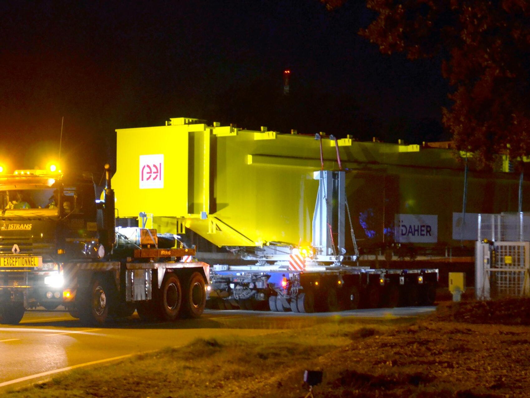 At 2:21 a.m. on Thursday 18 March, a convoy carrying a load as long as four buses passed the gates of the ITER site. The load was the first of four girders for the Assembly Hall cranes (provided by Europe) to be delivered in the weeks and months to come.