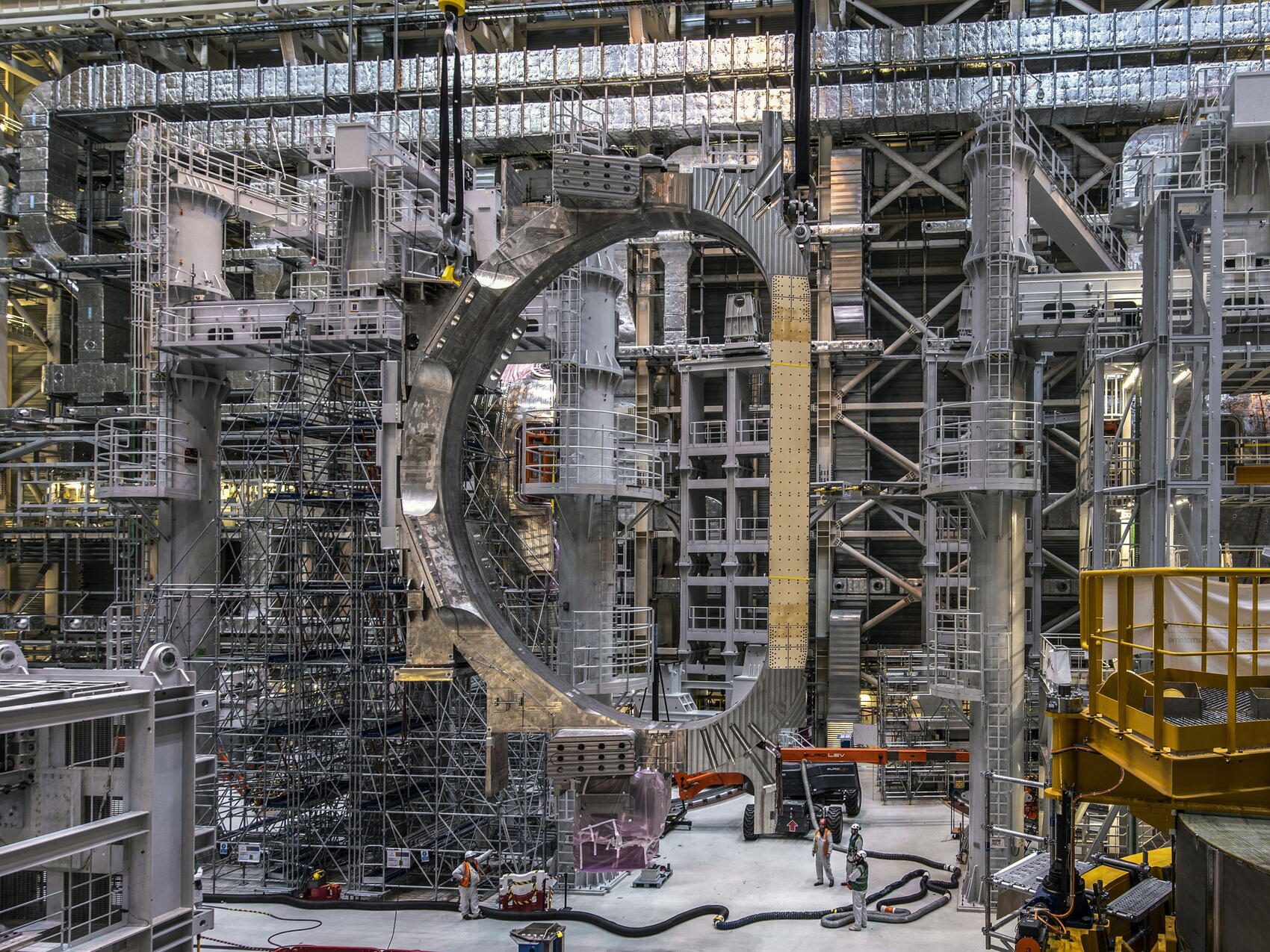 La semaine dernière, le transfert de deux bobines de champ toroïdal de 330 tonnes et 17 mètres de hauteur a été réalisé sans incident, donnant le coup d'envoi d'un lent et colossal jeu de chaises musicales en vue de réparer les panneaux d'écran thermique et les secteurs de chambre à vide défectueux.