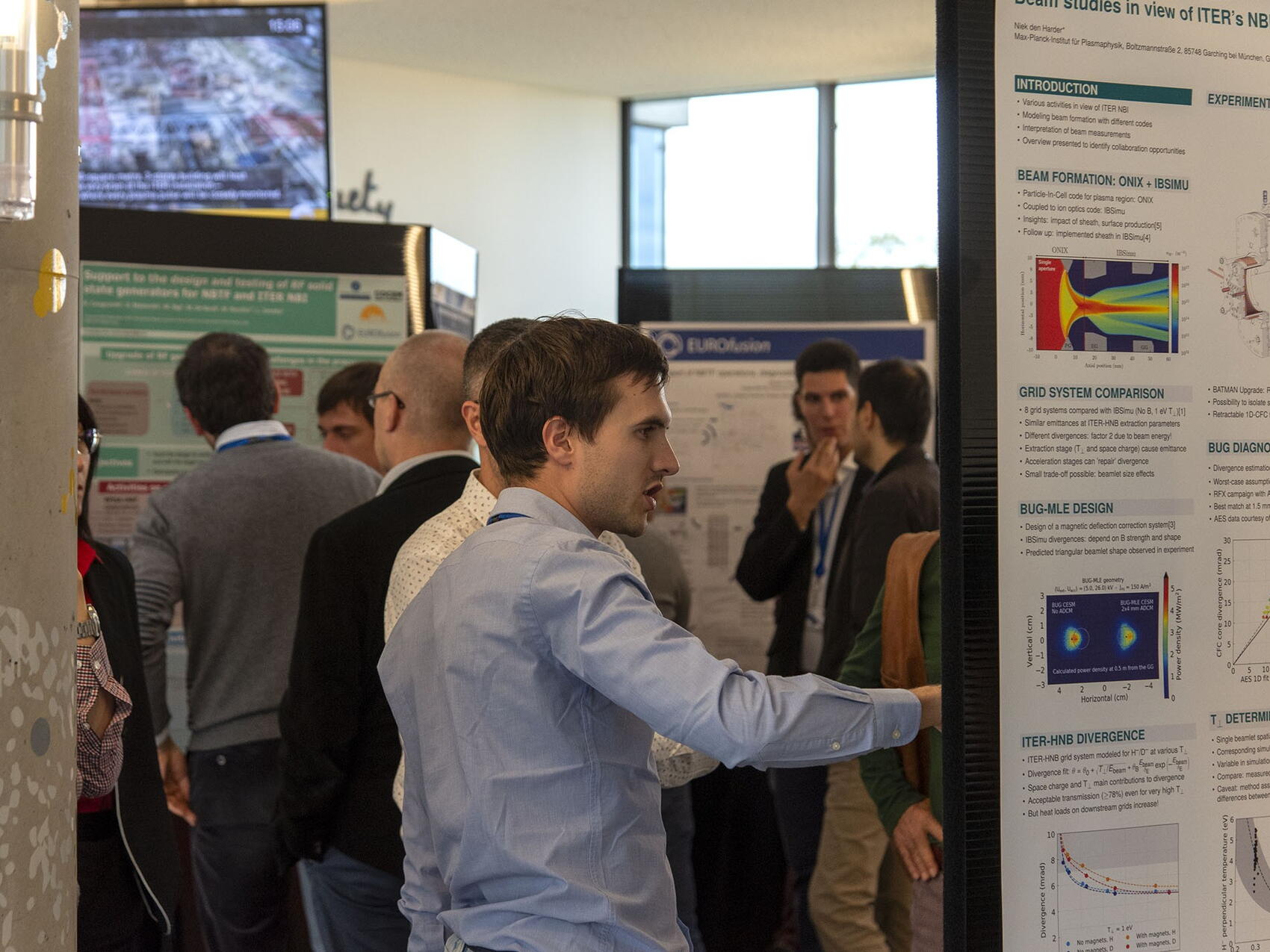 On 26 and 27 October 2023, EUROfusion experts working to support the R&D for the ITER neutral beam injection system at Consorzio RFX and IPP Garching had the occasion to convene at ITER Headquarters at the same time as world experts who are part of the ITER Neutral Beam Advisory Committee (formed as part of the 2019 agreement). This was a unique opportunity to develop synergies and bridges between experts, as well as to present the work performed by the EUROfusion experts to the ITER team and the committee. During a "teaser" session in the ITER Council room, experts gave two-minute summaries of their work. This was followed by a poster exposition in the lobby, a presentation of the ITER Project, a worksite tour, a tour of France's WEST tokamak (next door to ITER), and an informal dinner to continue the scientific exchange in a collaborative atmosphere. Because achieving the requirements for the ITER neutral beam system in terms of power, energy, and pulse length is a major challenge, this type of "coming together of the minds" was appreciated by all.