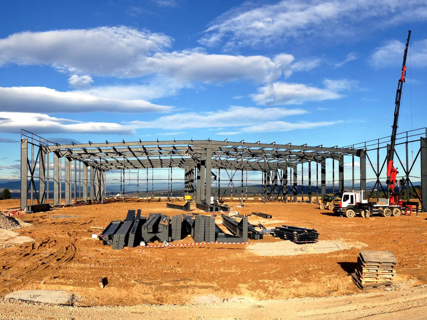 2014-04-08 - The on-site Cryostat Workshop is completed in just nine months, in April. Procured under the responsibility of the Indian Domestic Agency by the industrial giant Larsen & Toubro (also responsible for manufacturing the cryostat), the facility is erected by the French company Spie Batignolles.