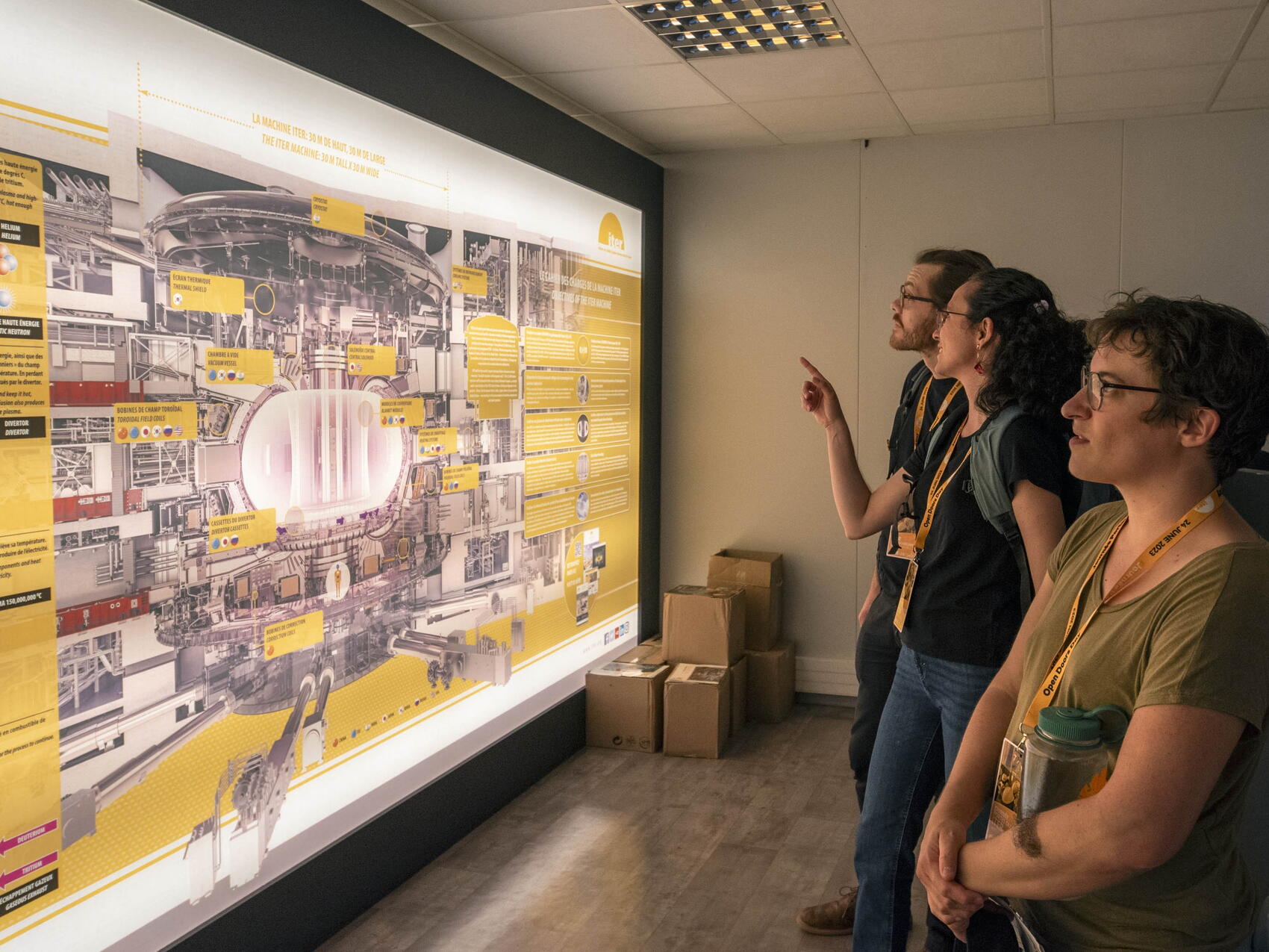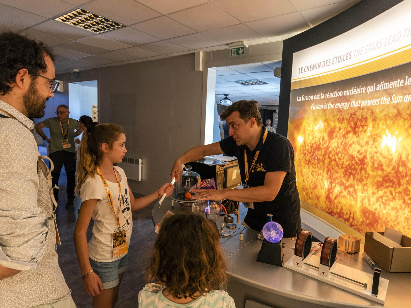 Dans le bâtiment d'accueil des visiteurs, des experts étaient à la disposition des arrivants pour répondre à leurs questions, alors que des « plasmagiciens » leur faisaient découvrir les lois de physique qui entrent en jeu dans ITER grâce à de petites expériences scientifiques simples et souvent amusantes.