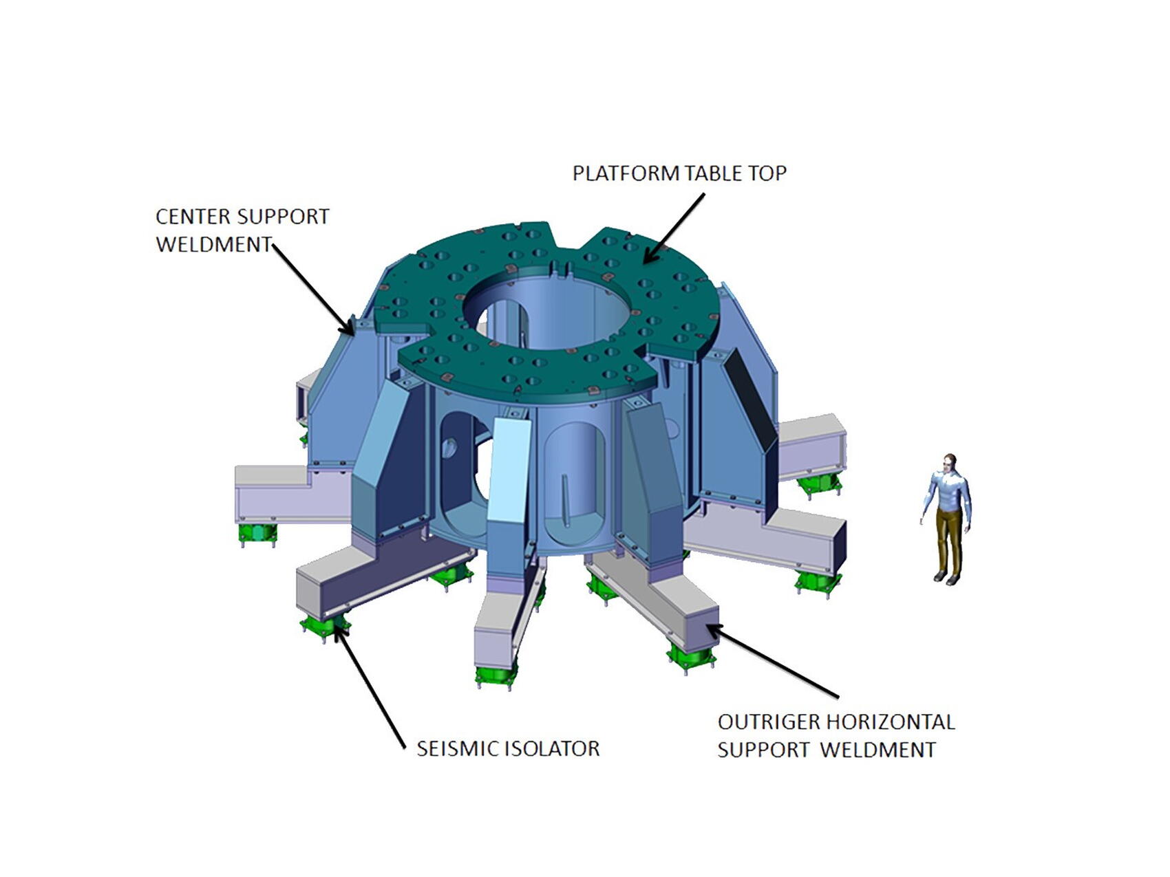 In addition to the centre support weldments and the platform table just delivered to ITER, the central solenoid team is also expecting nine thick, beam-like legs (the "outriggers") to be delivered at a later date.