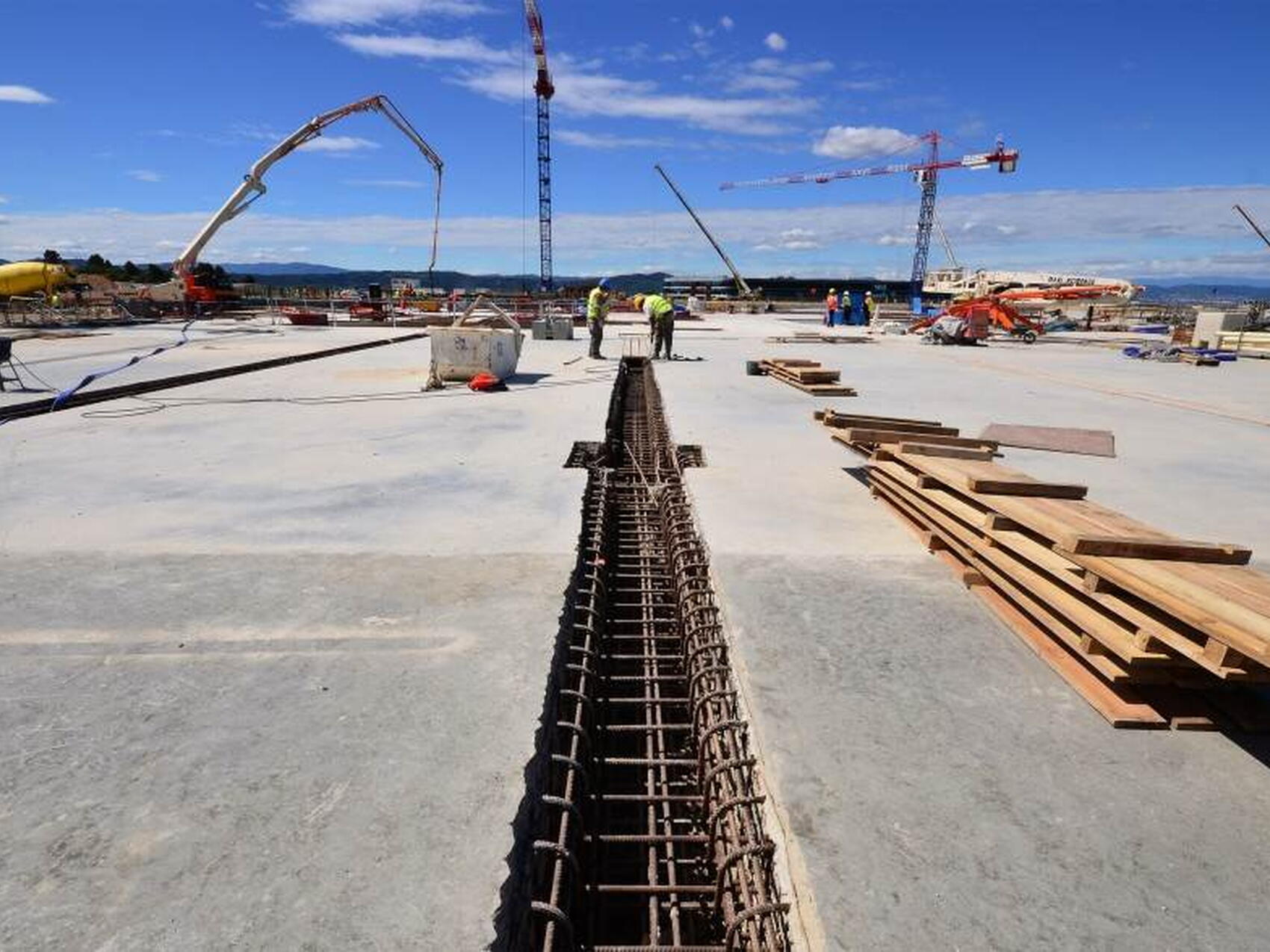 • Radier : poids des armatures 1,400 tonnes ; volume de béton, 10,000 m³