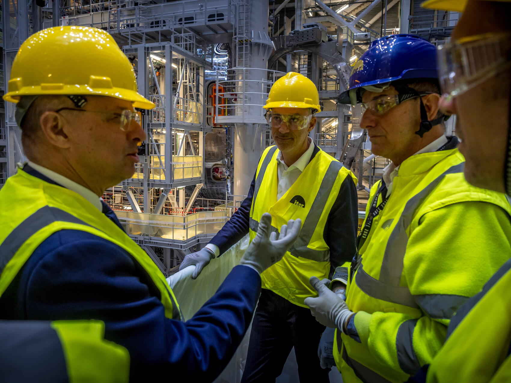 2026-04-01 - A visit by a delegation of European lawmakers on 1 April highlighted ITER’s role in Europe’s long-term energy strategy and its growing impact on the European economy. Here, MEPs Christophe Grudler (France) and Yvan Verougstraete (Belgium) visit the Assembly Hall with ITER Director-General Pietro Barabaschi.