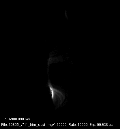 As part of the laboratory tests, the fragment plumes have been recorded and characterized for a large number of different pellet types using high-speed cameras providing first-of-a-kind, high-resolution measurements of the shattering process, which will be used for future modelling of this key process for ITER. During this commissioning and testing exercise, more than 1,300 high quality videos were produced. An example of the fragment plume obtained during laboratory tests can be seen in the second GIF (left) and the black and white images.
