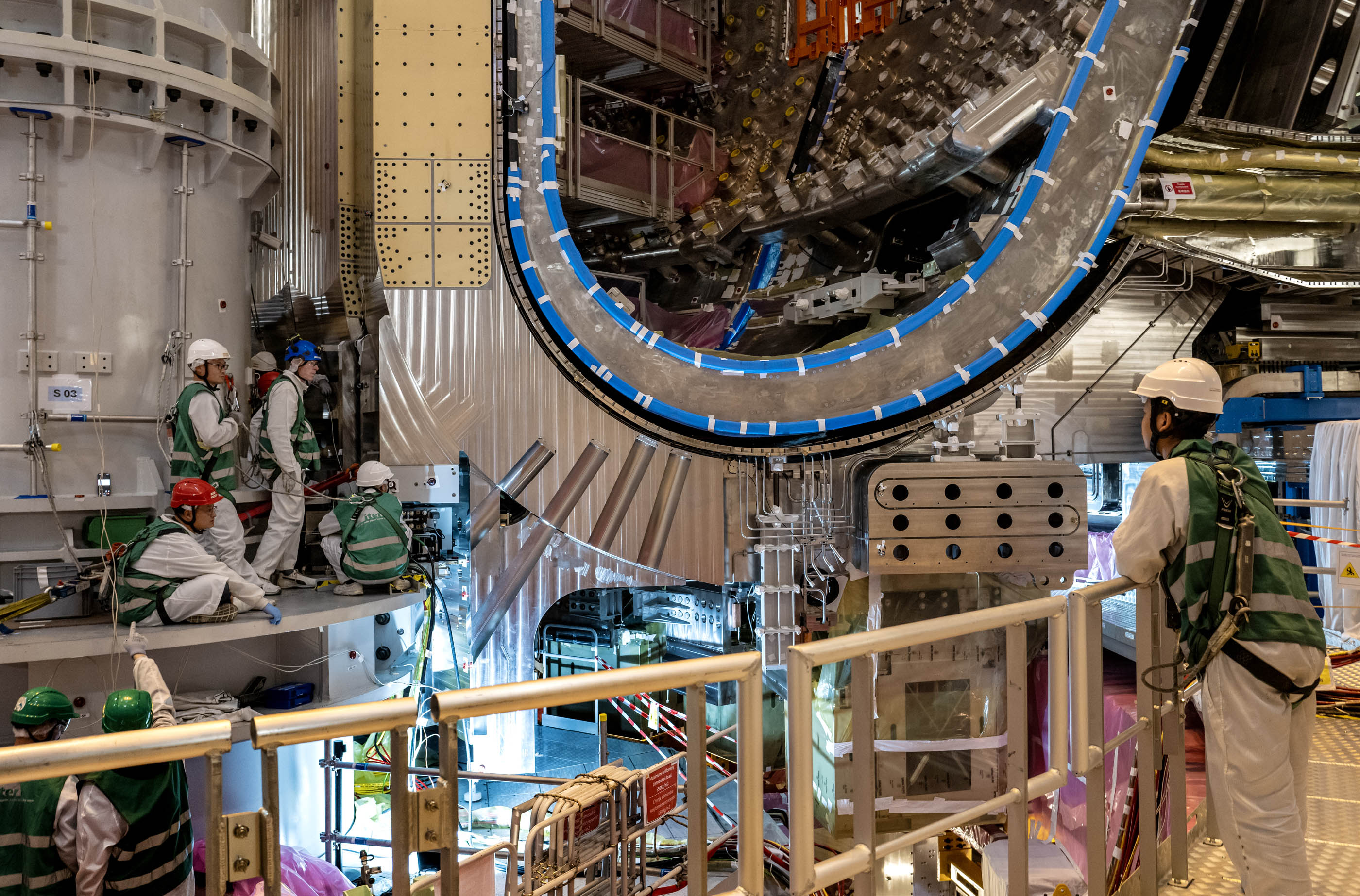 Workers stand on the cryostat base at the bottom of the tokamak assembly pit. The photograph was taken by Kevin Ballant, a design coordinator in the CAD Activities section and the driving force behind the launch of the ITER Photo Group in 2023. The Group organizes workshops and software training sessions, and at the end of this year showcased the work of some of its 80 members in an exhibition held in the lobby of ITER Headquarters. (See the link below for the virtual exhibition.)