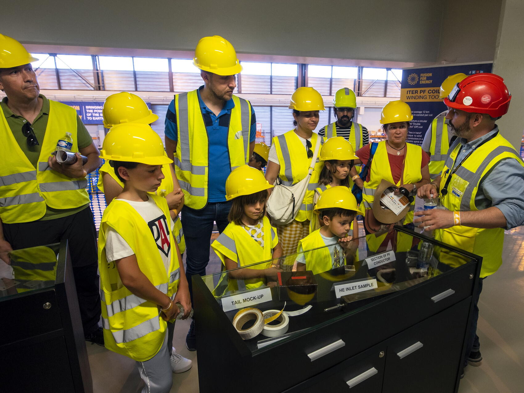 Schoolchildren, students, ITER staff and their families, members of the public—including from such far away places as Thailand, Venezuela, and Brazil—braved the scorching heat to have the opportunity to learn more about ITER science, machine assembly, and manufacturing. In the European magnet winding facility on the platform, visitors were walked through the steps of transforming coiled spools of superconductor into the large ring magnets that girdle the ITER machine; inside the climate-controlled Assembly Hall, they saw two of the subsections of the ITER plasma chamber in various stages of equipment and pre-assembly and a whole host of mammoth tools created especially to handle them.