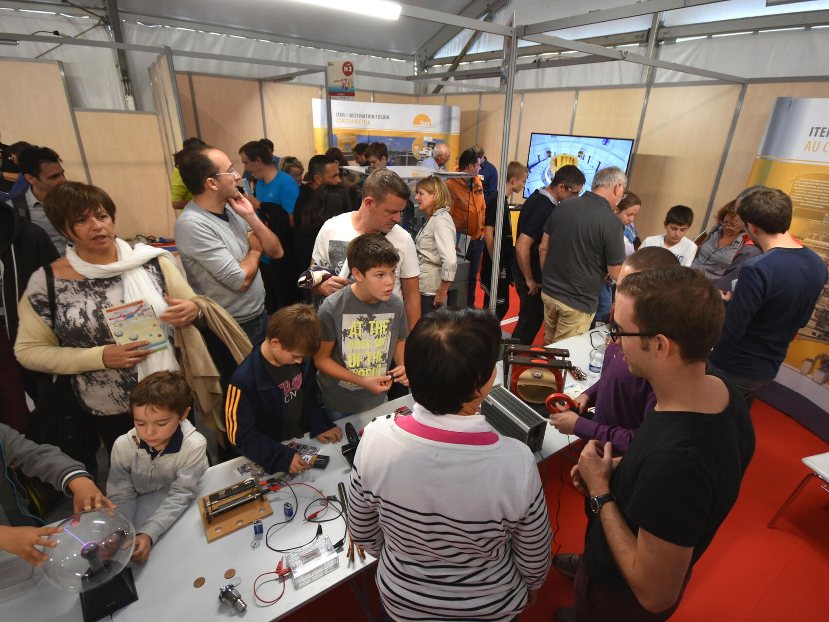 Many of the stands offered small-scale experimentation and do-it-yourself gadgets to get the visitors to participate, touch, and walk away with an increased understanding of some basic scientific principles. The ITER stand, with its mockup of the Tokamak and multiple videos telling the ITER story, attracted an endless stream of visitors who could ask questions to the many guides who had volunteered for the event.