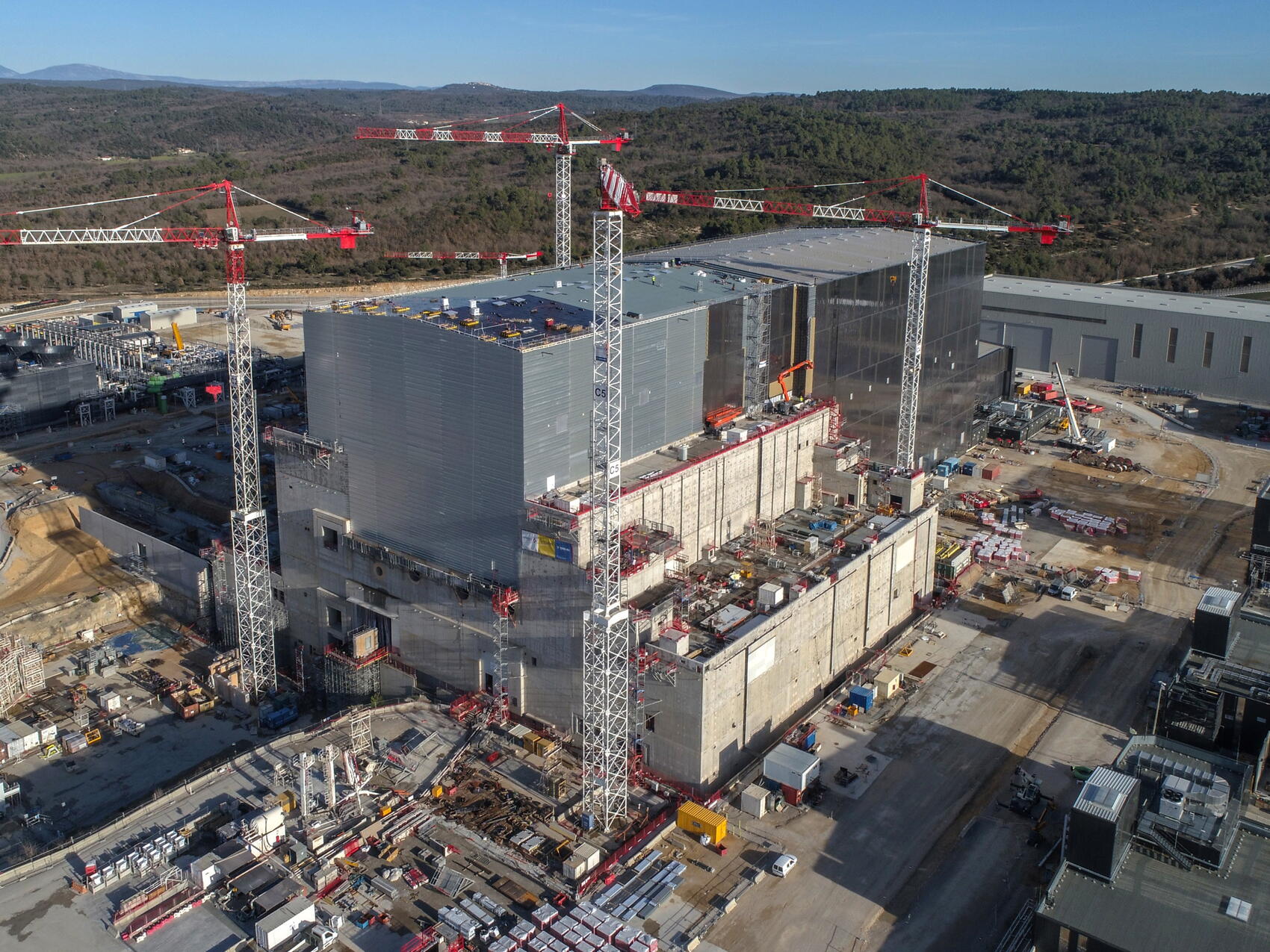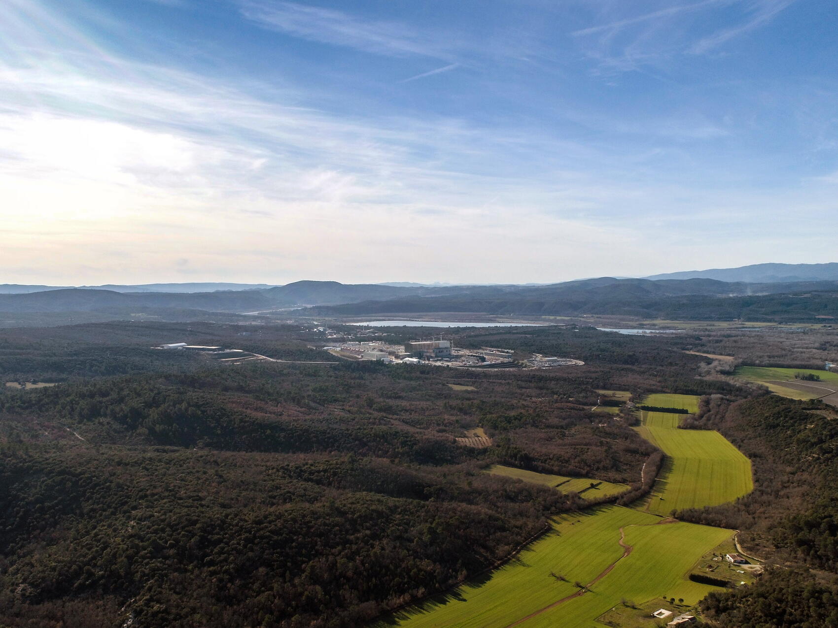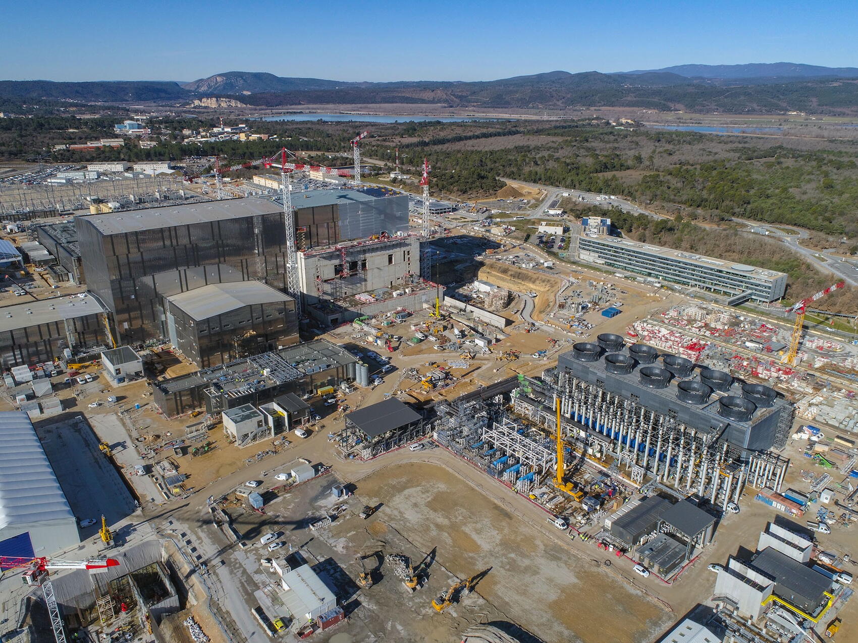 Carved out of a 180-hectare site in the Durance River valley, southern France, the ITER scientific facility gleams in the late winter sun. Seventy-three percent of the construction work that needs to be completed by First Plasma has been realized. Photo: ITER Organization/EJF Riche