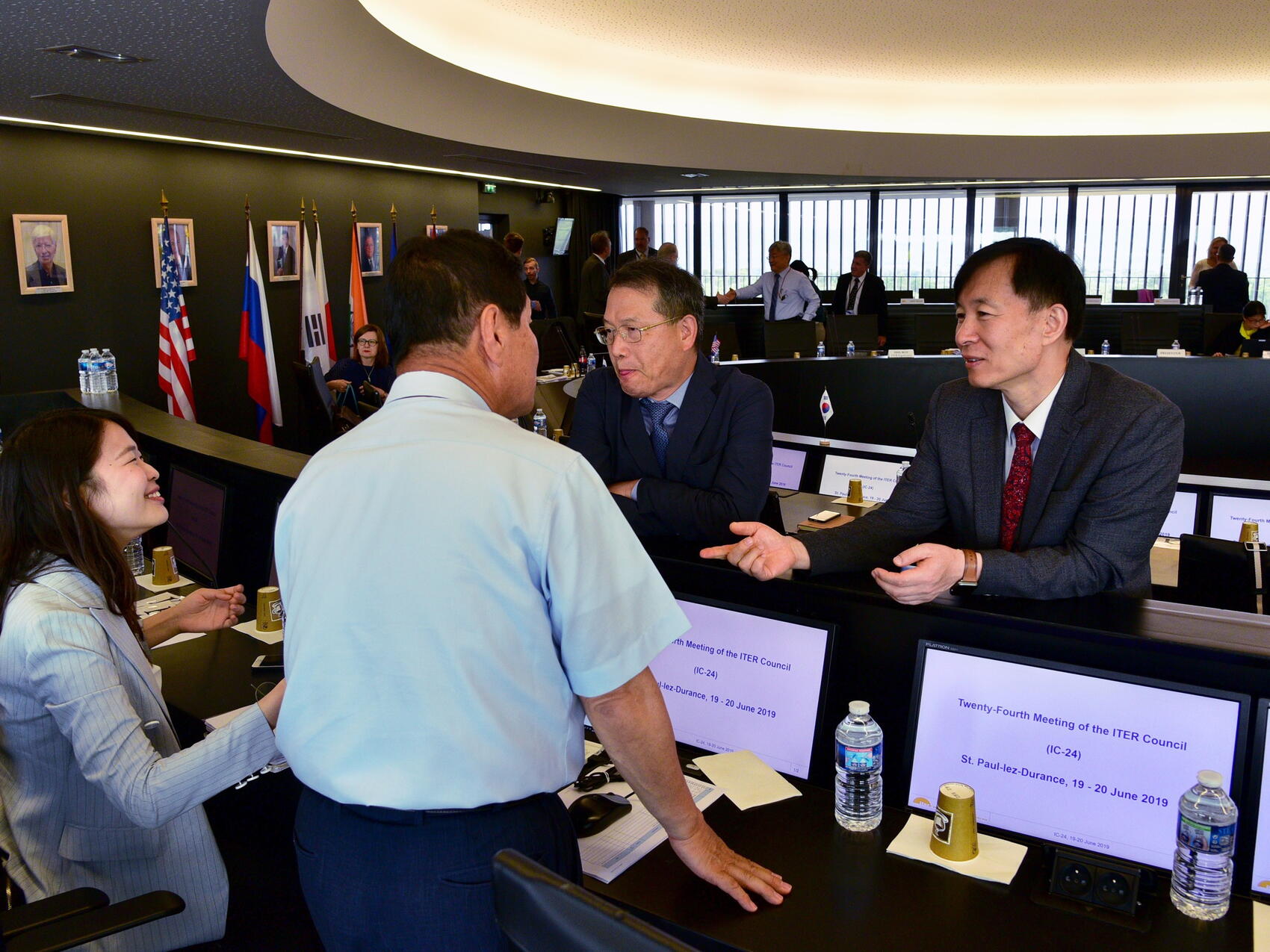 Another important point of business was examining the internal organizational chart proposed for the next phase of project execution—machine assembly. The ITER Council approved the reorganization, which reflects the transition from an engineering/manufacturing project focus to one that facilitates the execution of assembly, installation and construction on site. The ITER Organization plans to have the new organization in place for January 2020, just before Assembly Phase I begins officially with the installation of the cryostat base in the Tokamak Building (March 2020).