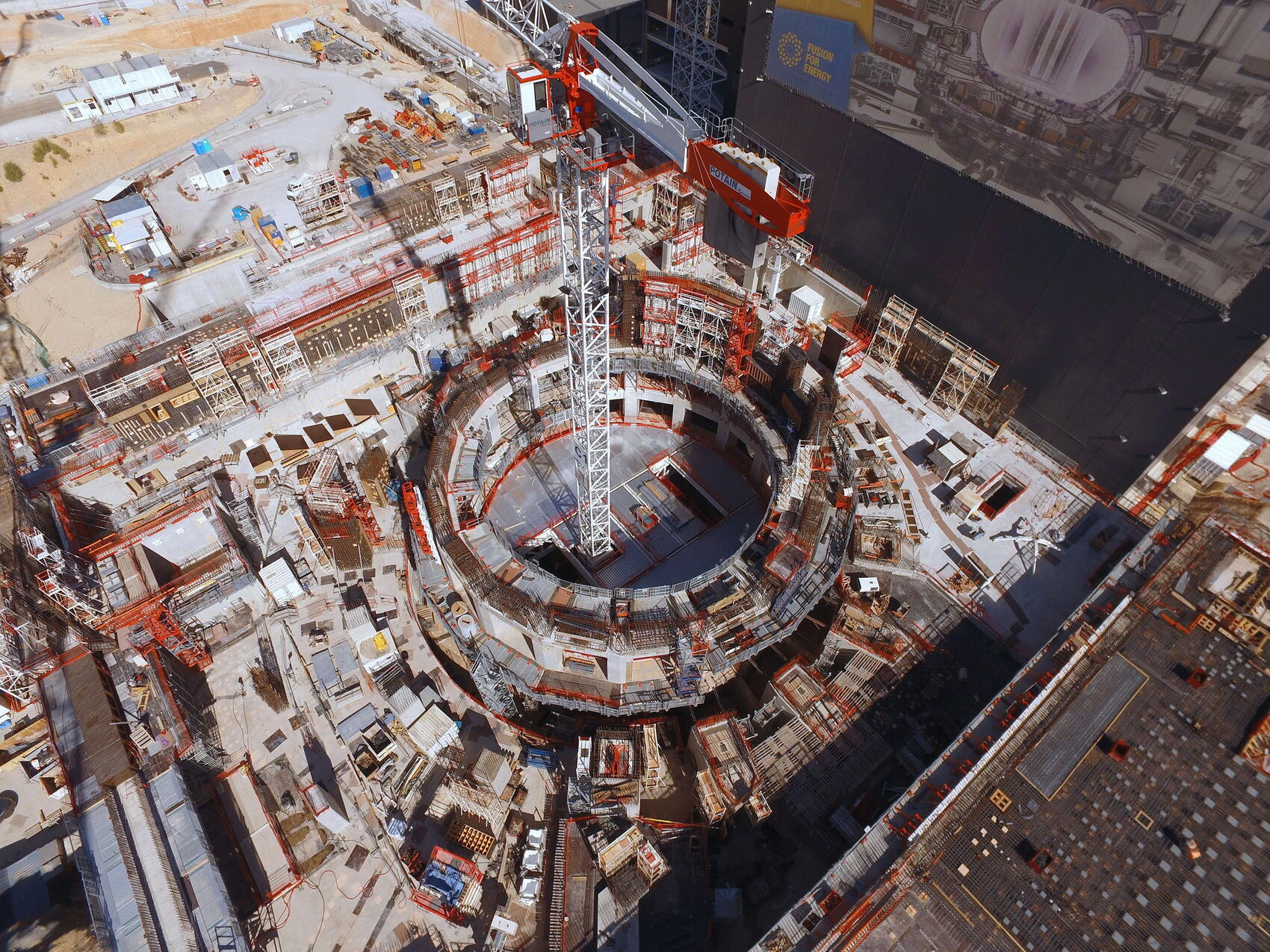 The ITER platform is changing fast: buildings that were just steel and concrete skeletons a few weeks ago now have roofs; ongoing cladding operations herald the architectural harmony that will be the rule for all structures (with the exception of the poloidal field coil winding facility and the Cryostat Workshop, which are not covered in mirror-like stainless steel and grey-lacquered metal); and at the heart of the installation, the bioshield seems never to stop rising ...