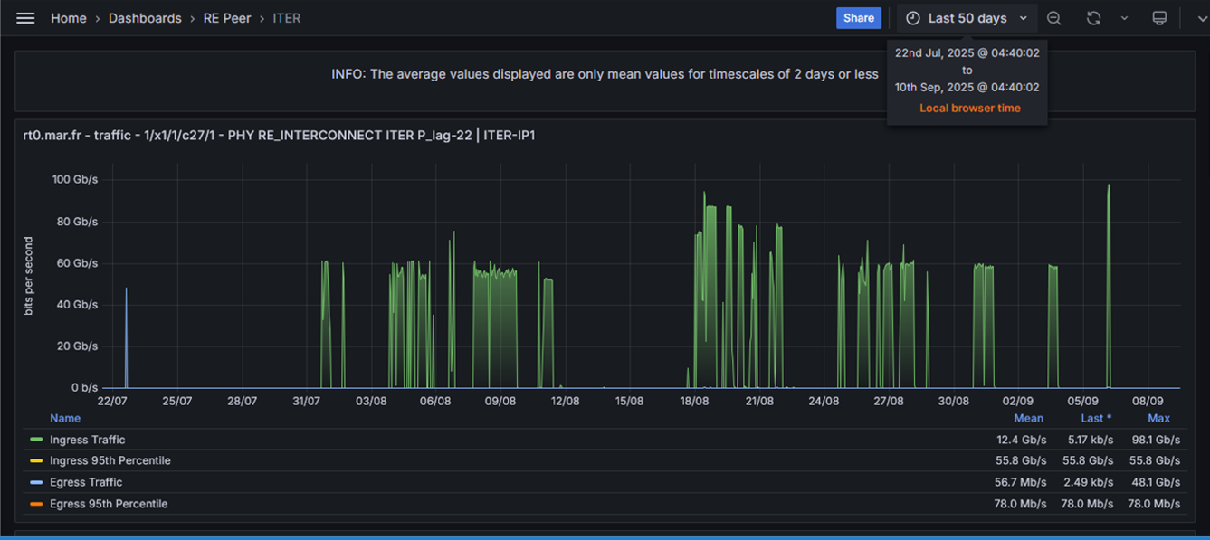 The campaign in Japan, conducted from mid-August to early September, built on a 2016 demonstration that reached 10 Gbps, which was what was available at the time. The new tests achieved two simultaneous 100 Gbps links—a twenty-fold increase. Engineers demonstrated continuous throughput, multi-path transfers, and resilience by simulating a submarine-cable outage between Marseille and Rokkasho. Both ITER.sync and MMCFTP were used in the tests, providing valuable insight into data transfer strategies and specific tuning for long-distance transfers.