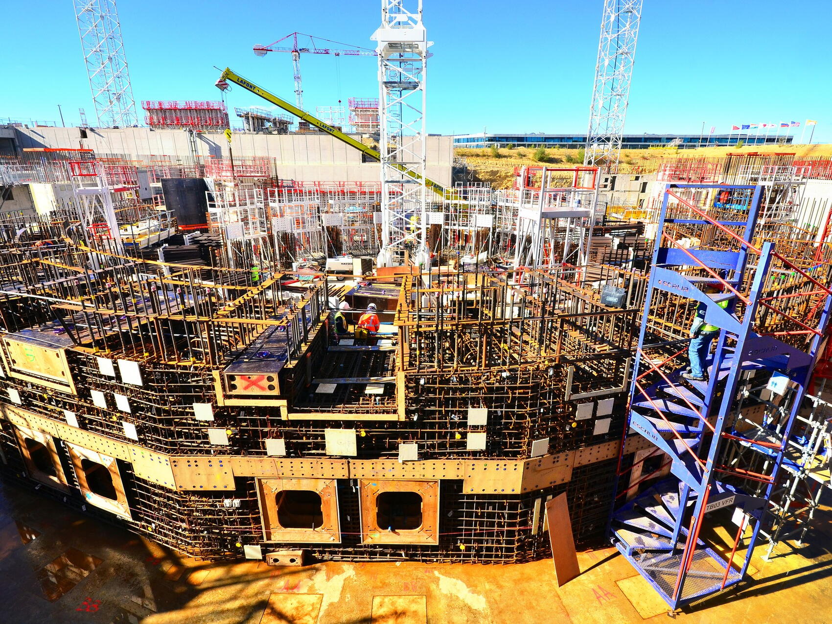 2015-10-07 - Work to install the rebar of the 3.2-metre-thick bioshield was carried out from April to September 2015. Concrete pouring will begin this month for the first 200° segment. As the density of steel reinforcement prevents the use of concrete vibrators (part of the normal concrete pouring process), a specially formulated self-compacting concrete will be used. Pouring operations on the bioshield will continue through January 2016.