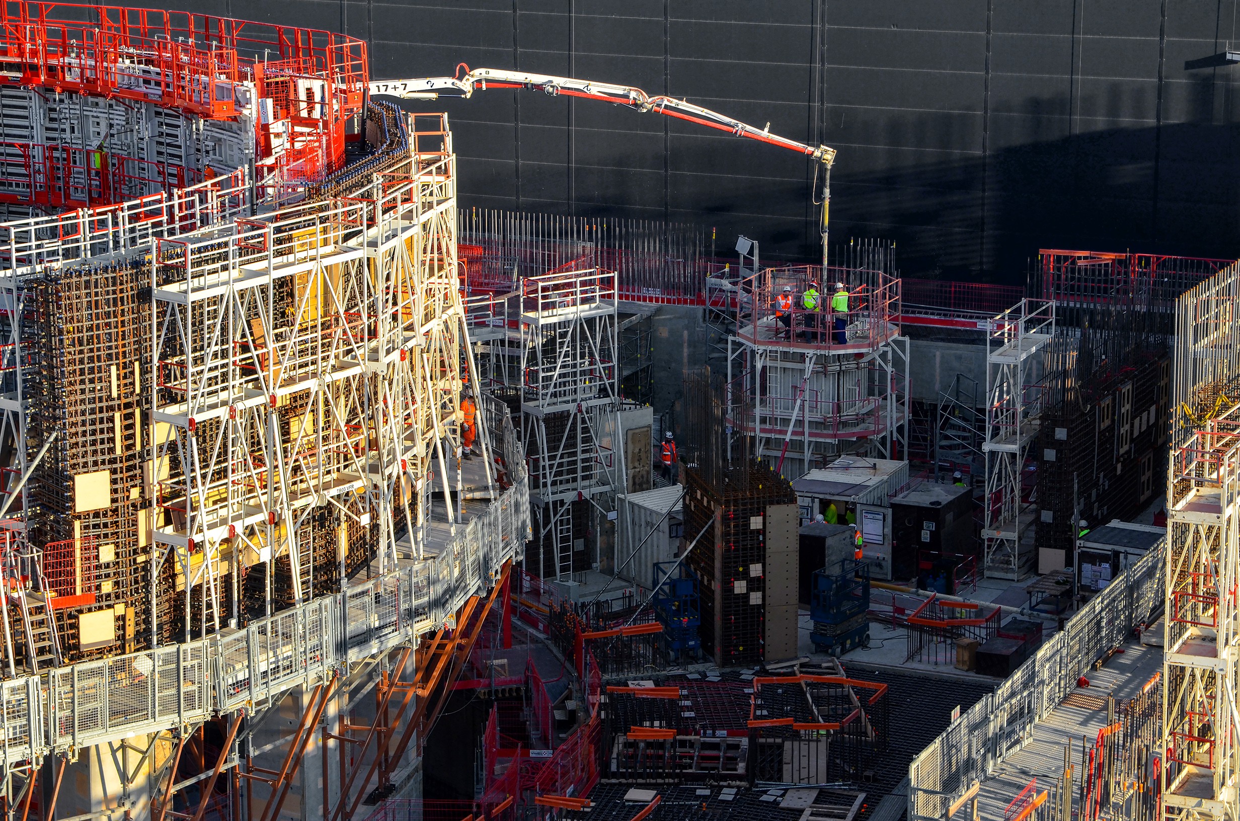 Taken at the very end of the afternoon from the top of the highest worksite crane, this view takes in the "heart" of the ITER installation.