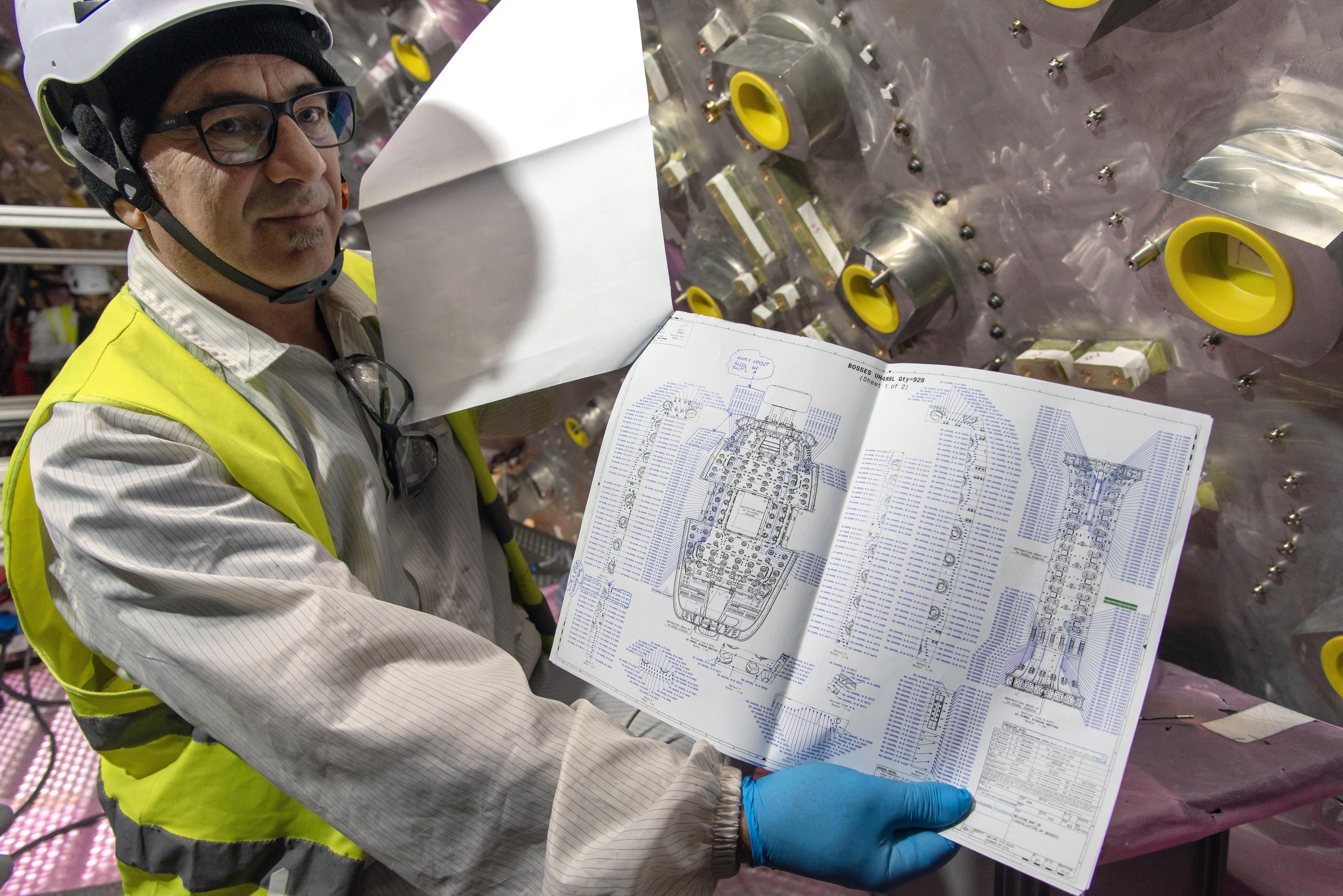Down in the tokamak assembly pit, sitting, crouching, or lying flat on the staging platforms inside the vacuum vessel sectors, workers concentrate on their delicate task. One by one, on the inner surface of each sector, they are precisely positioning and welding more than 2,000 bosses for the in-vessel sensors devoted to magnetic field measurement, as well as for sensor cabling. “The magnetic field is the heartbeat of the ITER machine. Monitoring its intensity, geometry and variations is absolutely critical,” explains ITER Magnetic Development Officer Yunxing Ma.