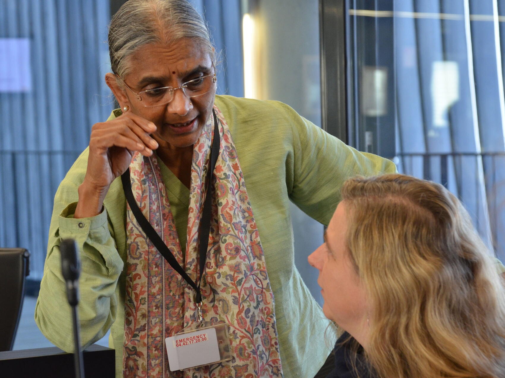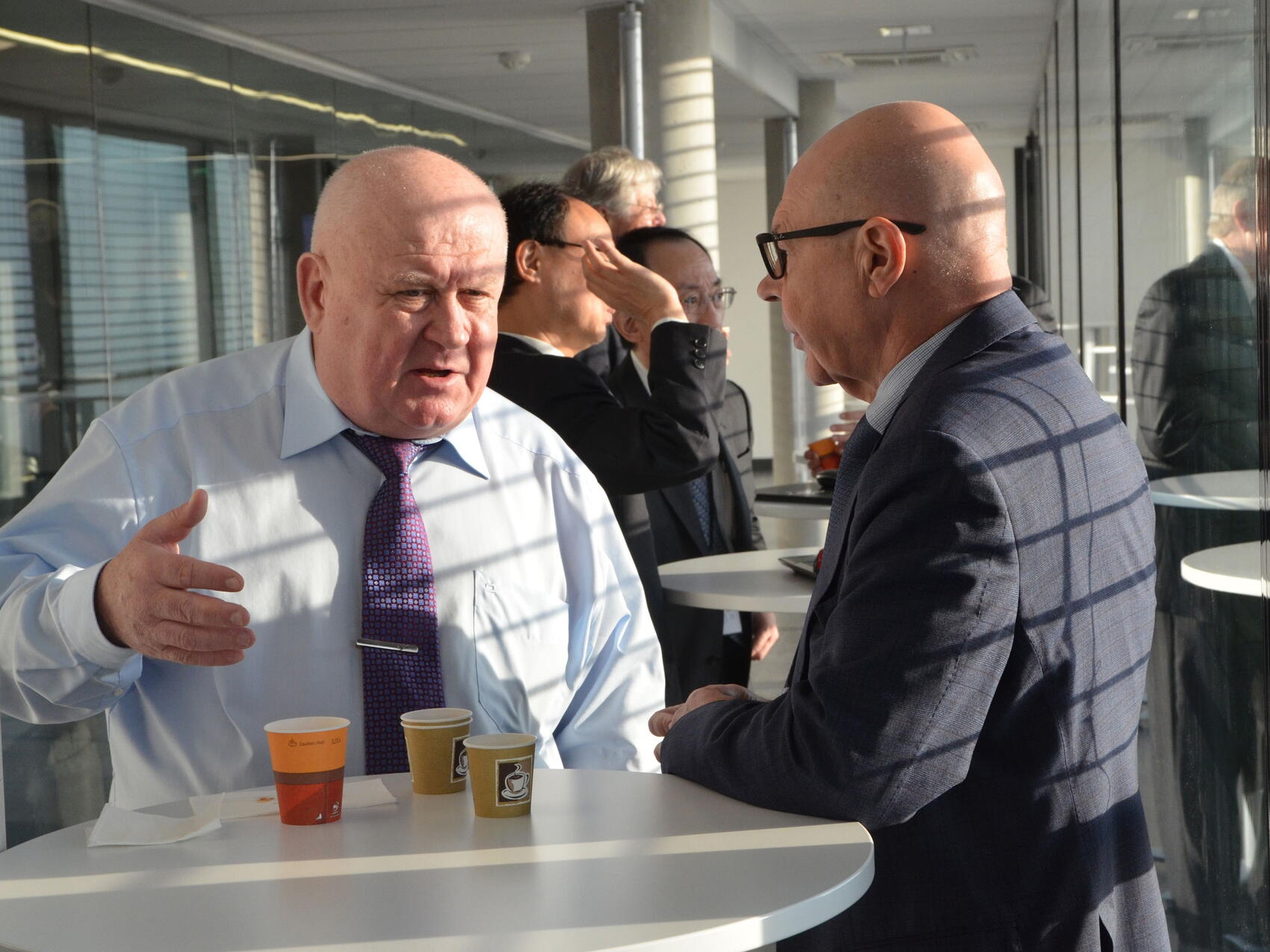 At the end of the second day, the ITER Director-General proposed a visit on site. One group of delegates can be seen here standing on the floor of the cryostat base, with the rim of the base in the background.
