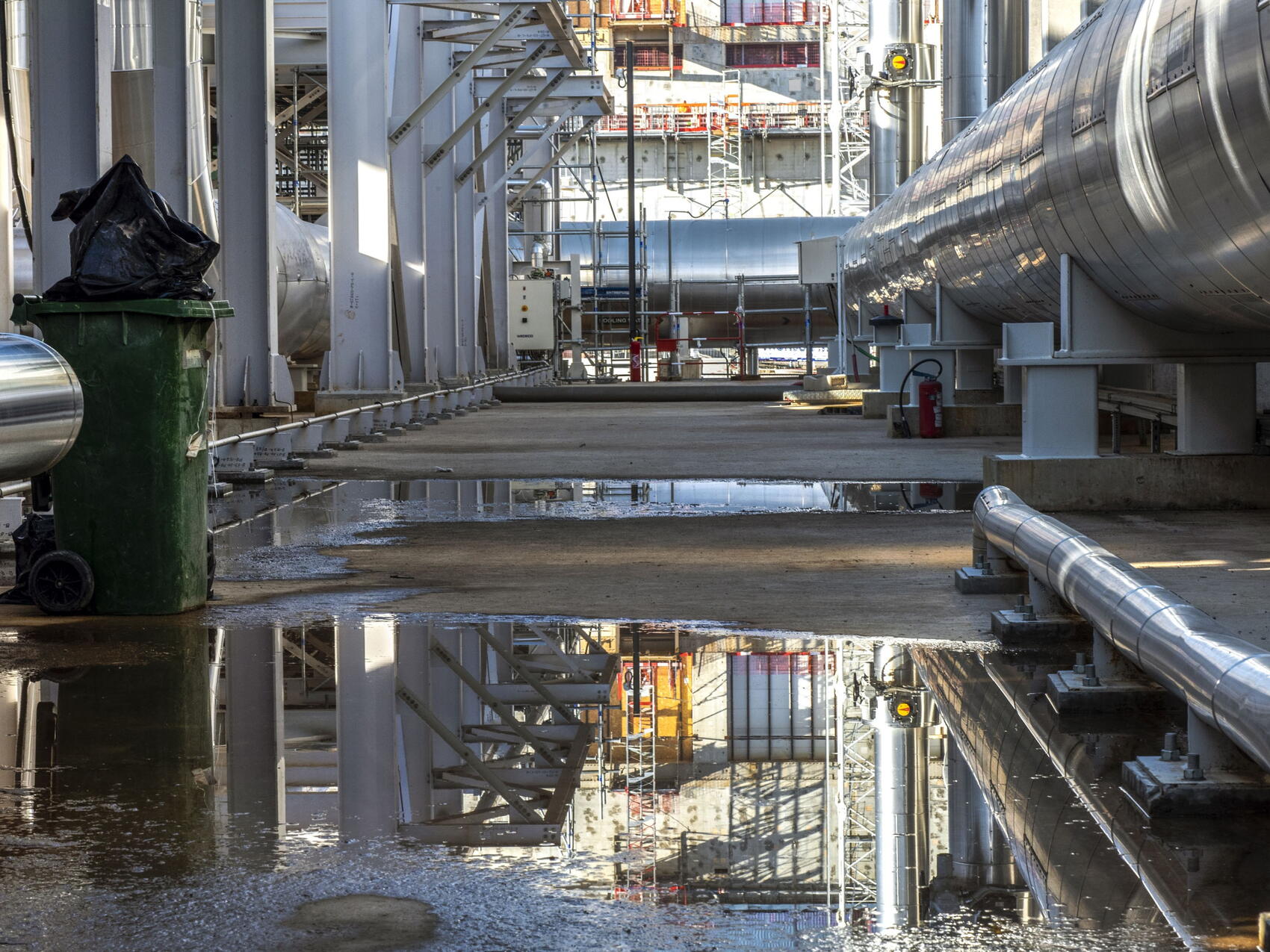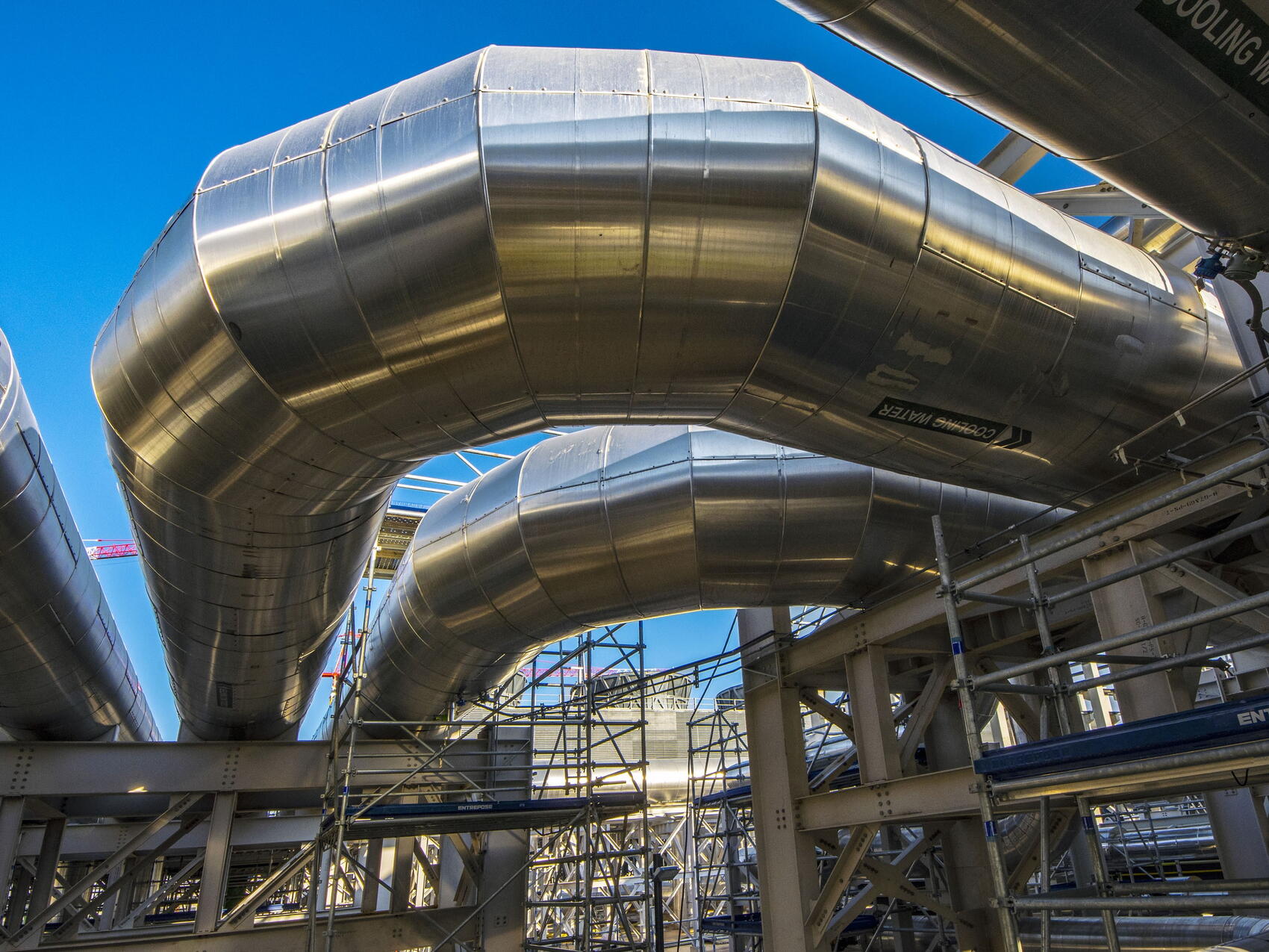 Once it has collected the heat, the water is brought down in temperature progressively, circulating through the heat exchangers, the hot basin and finally the cooling towers of the cooling water plant before it is re-injected into the cooling circuit to begin all over again.