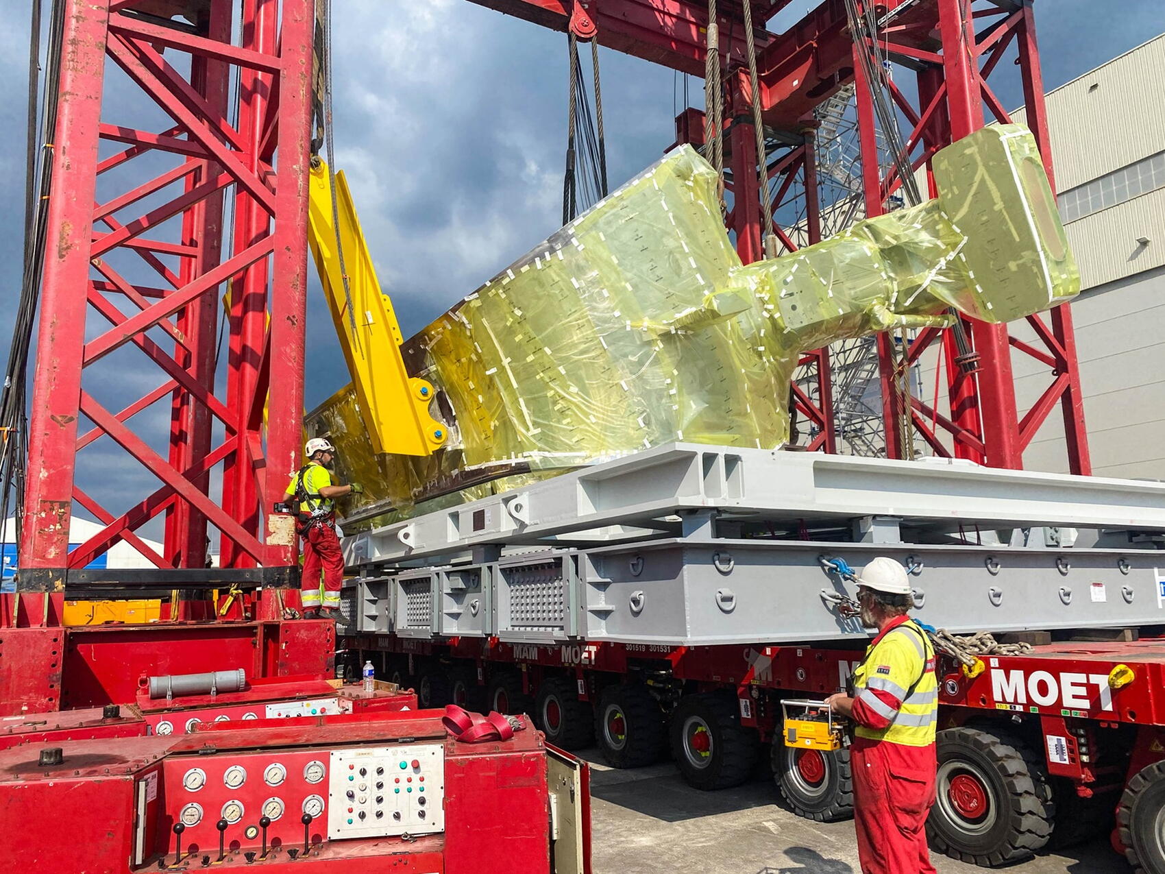 In close collaboration with Mammoet, the company that provided the massive gantry and logistics support, the vacuum vessel team engineered the rotation over the past two months to ensure it could be performed without risk to the component while meeting the most stringent safety conditions. With technicians from the European consortium that had manufactured the sector, six temporary lifting lugs were welded onto the sector so it could be attached to the gantry while two lifting beams were manufactured to serve as braces during the most taxing parts of the procedure.