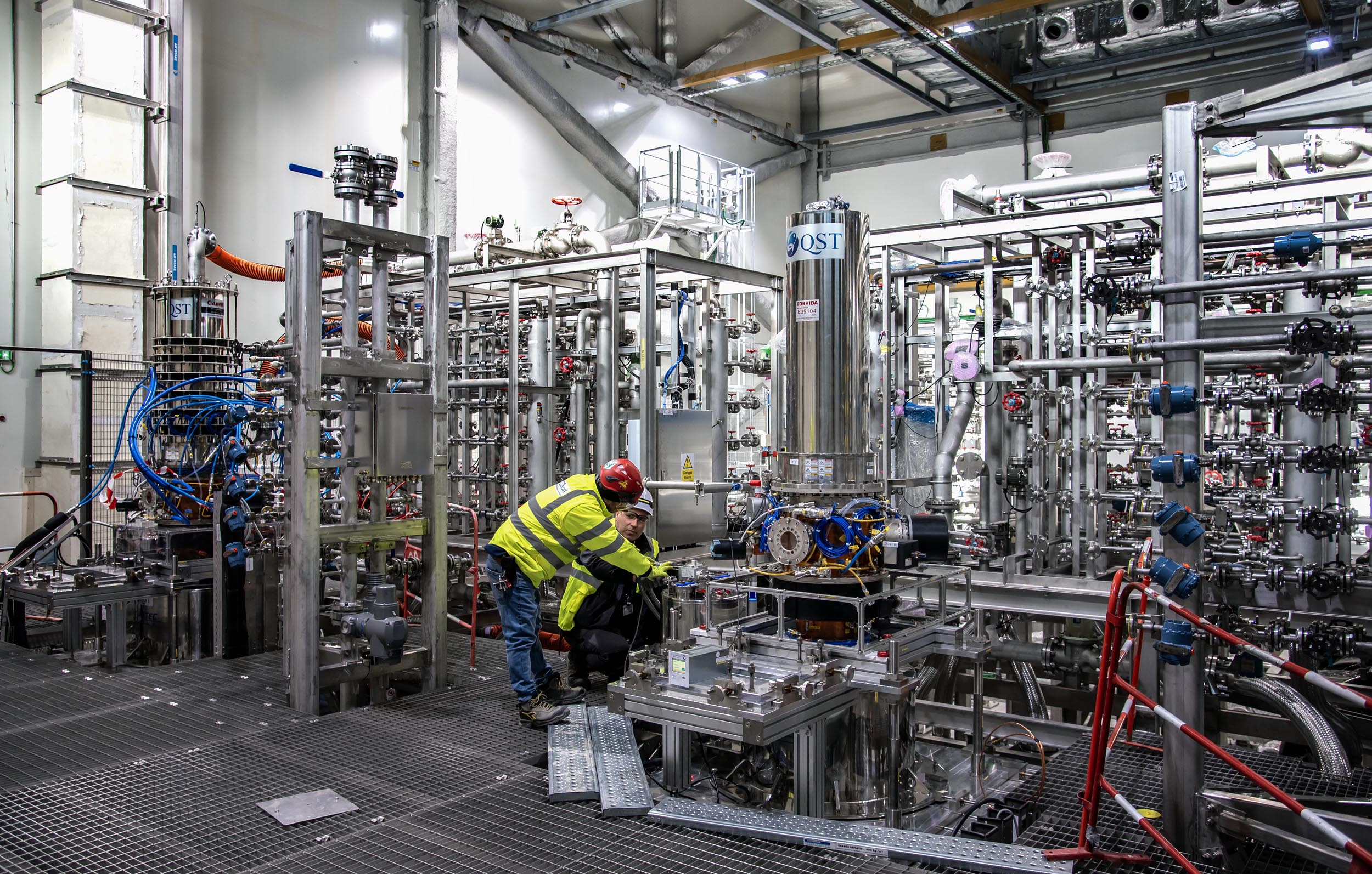 The third level of the Radiofrequency Building is now occupied by a forest of dull grey piping, shining steel manifolds and brightly coloured cables. At the far end of the space, a constant humming is an indication that compressors and chillers are at work, progressively bringing the “super conductive magnet”—an auxiliary system located at the base of the first gyrotron—to cryogenic temperature.