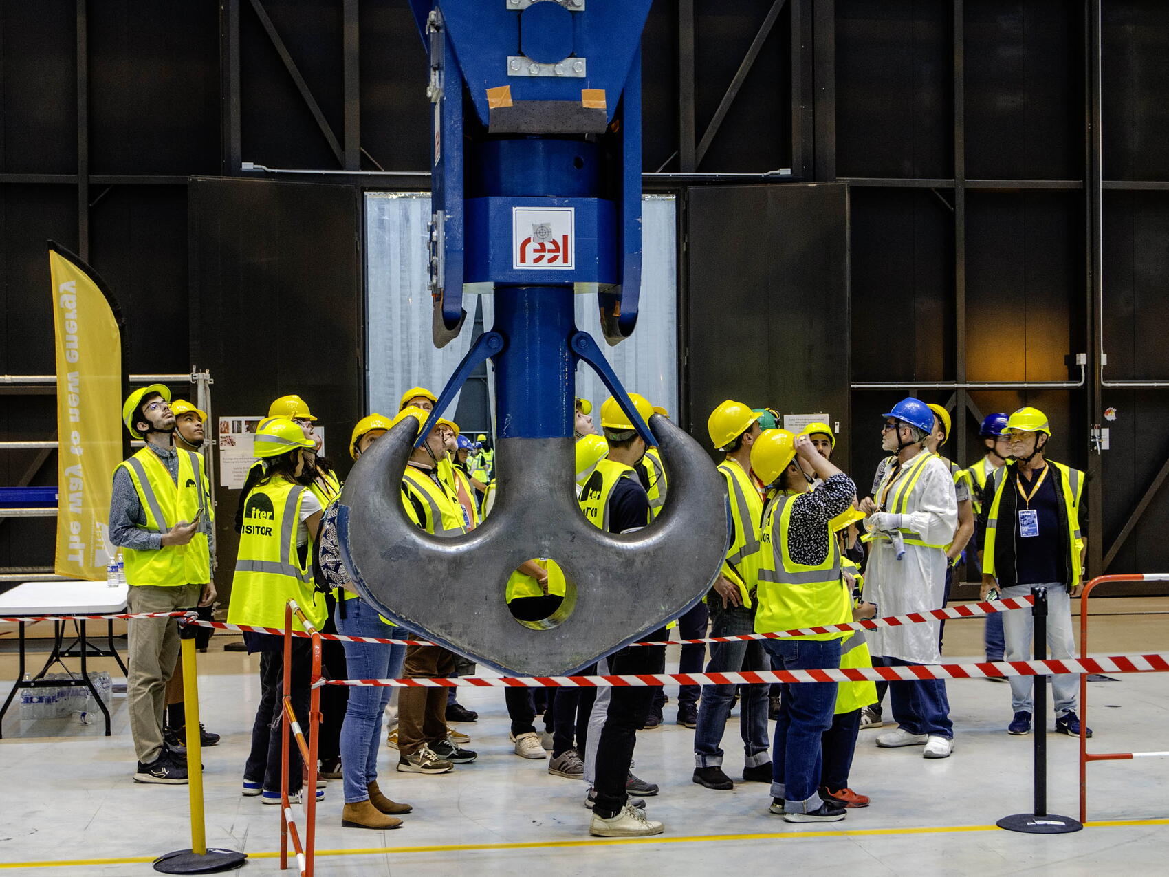 The timing of the 2025 spring edition could not have been better. With one sector module now installed in the machine assembly pit, another two suspended in Assembly Hall tooling (one just docked and another in the final stages of the sub-assembly process) plus a tall central solenoid tower in construction, visitors were treated to a view of some of the most spectacular machine components and assembly activities during their 45-minute walking tour of the principal ITER assembly spaces.