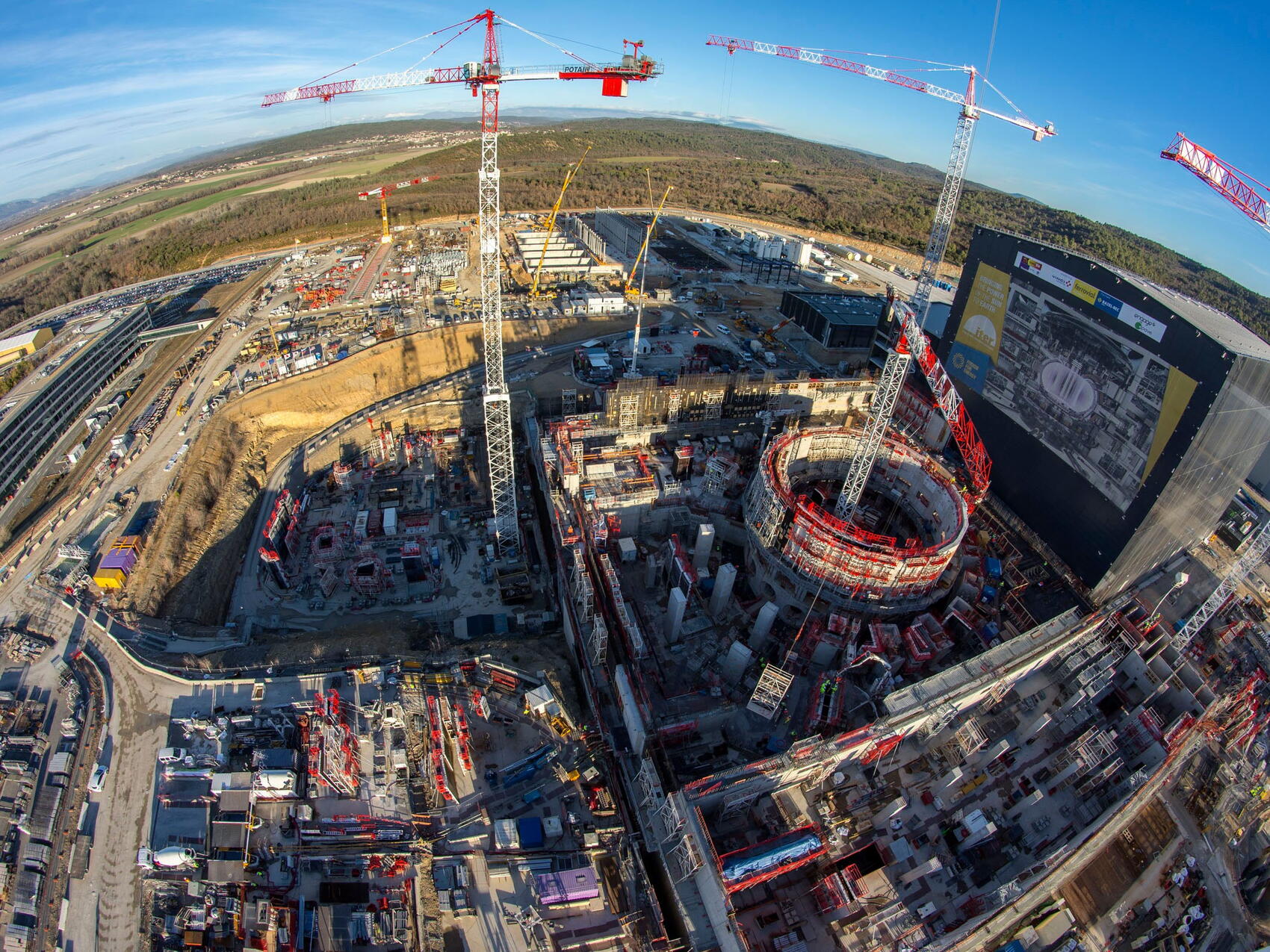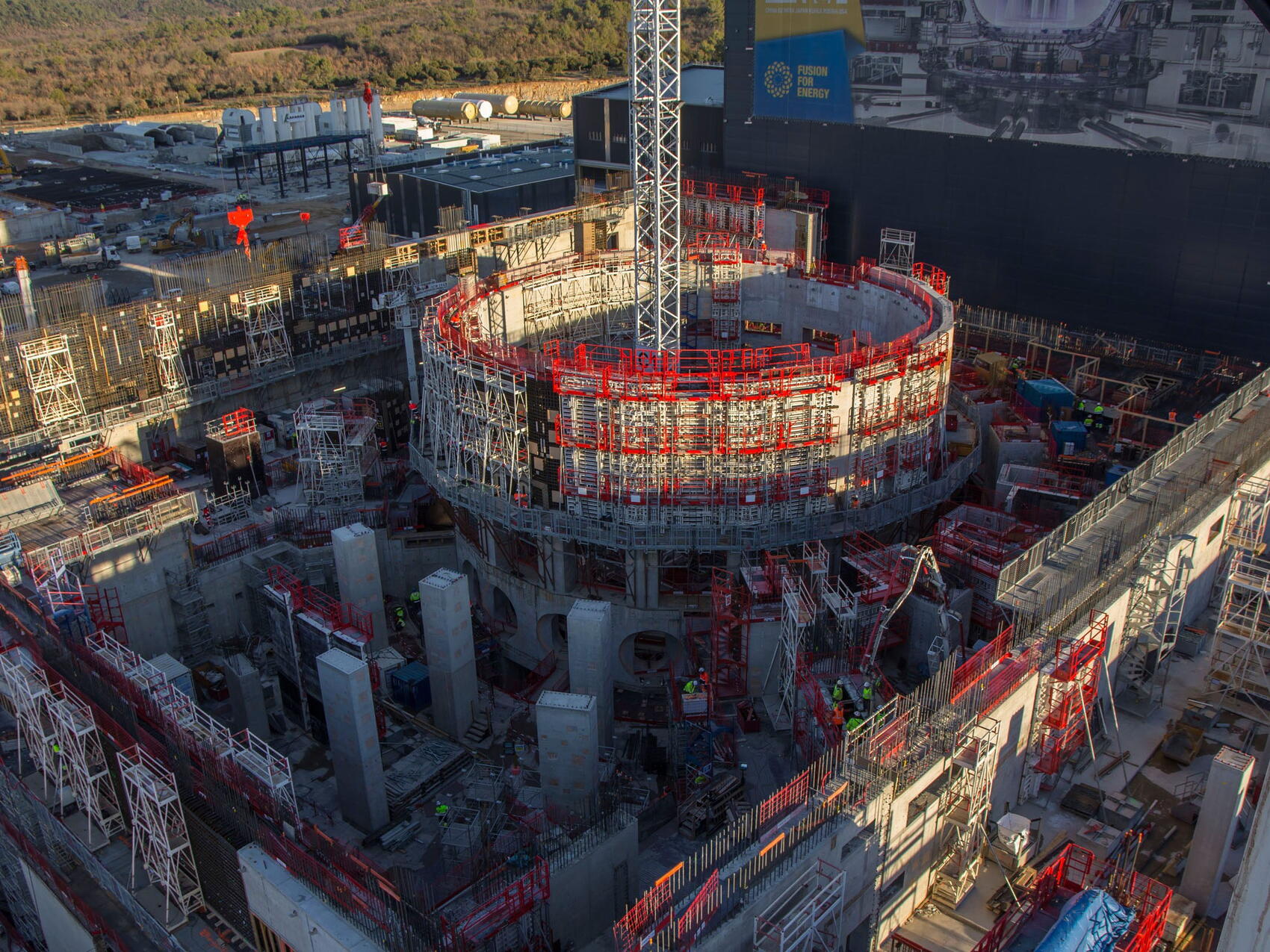 In the Tokamak Complex to the left, the bioshield has come full circle, at least visually. Only 30 percent of the last level (L4) remains to be poured, and this work should be completed in the coming weeks.