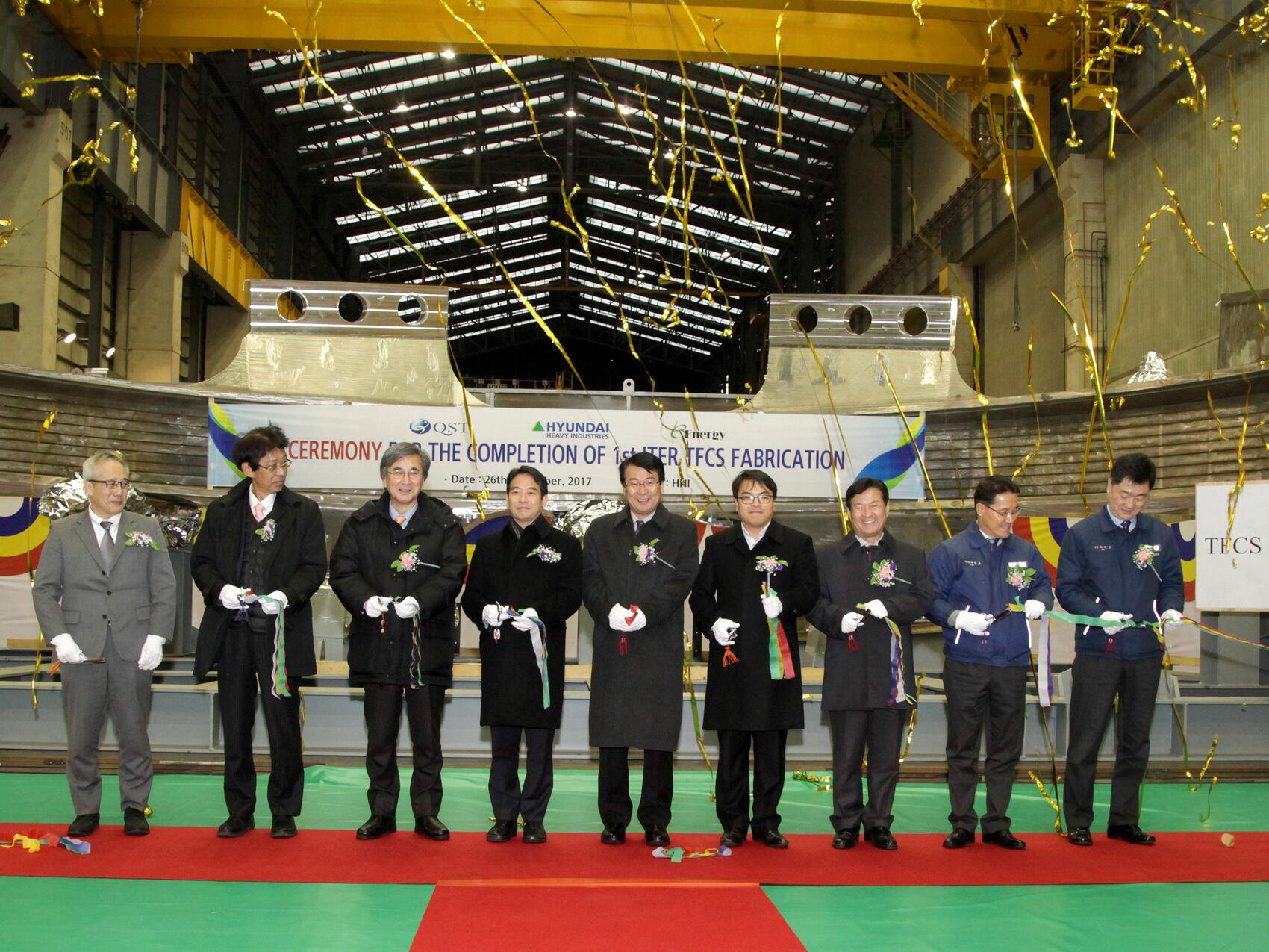 The outboard leg was contracted by Japan to Hyundai Heavy Industries in Ulsan, Korea. The ultimate test was then to verify that structures manufactured in two locations following stringent ITER Organization specifications would fit together perfectly. "Ultimately, the story of the toroidal field coil cases is the occasion to showcase the spirit that underlies the ITER Project in its entirety—the "One-ITER" spirit of teamwork that unites us around one design, one schedule and one mission," stressed Deputy Director-General Tada.