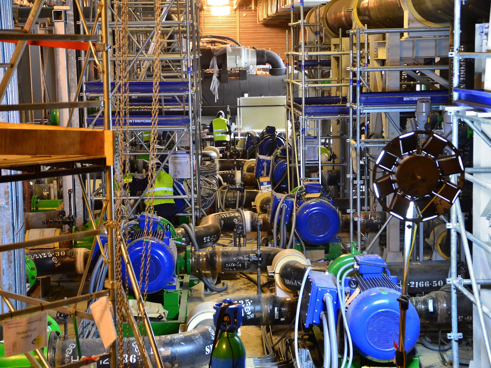 A tokamak needs to be fed electrical power in both AC and DC form; it requires powerful heating systems to bring the plasma to the required temperature; the machine's superconducting magnet system demands a constant circulation of cooling fluids; the heat generated on the plasma-facing components must be evacuated by a large water cooling system, complete with kilometres of piping, basins and cooling towers.