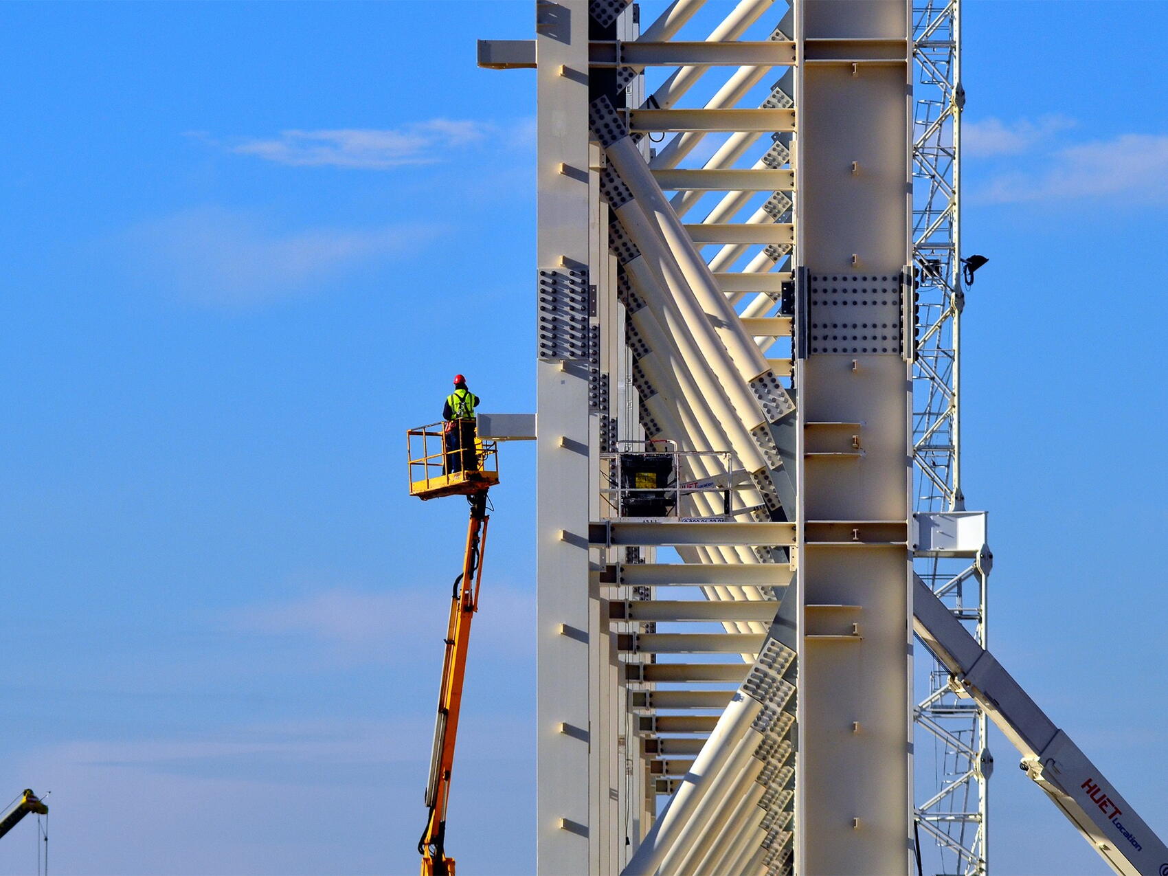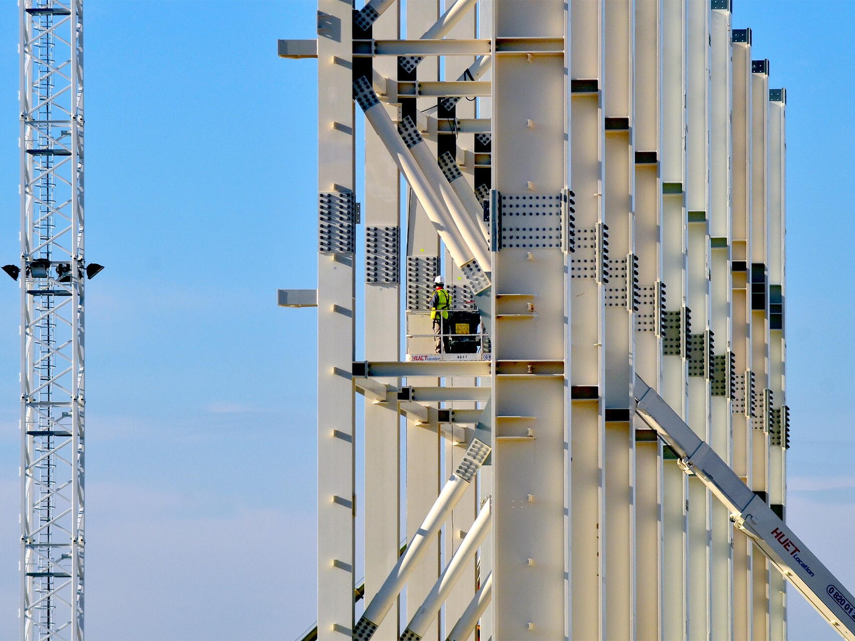 On the north side of the work site, two of the five levels of pillar are already in place. Work has just begun on the third level (one third-level pillar is visible in the photo).