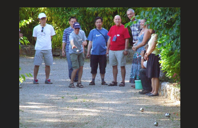 Intercultural knowledge (here, staff attempting to master the art of "pétanque") is essential to living in a foreign country.