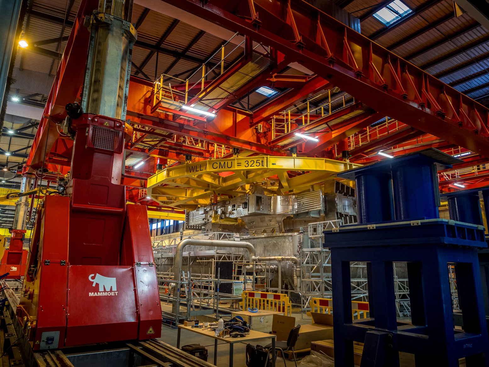 The tools have loading capacities that vary from 500 tonnes for the "upending" tool that turns vacuum vessel sectors from horizontal to vertical, to 1,500 tonnes for the heavy lift cranes overhead in the assembly theatre.